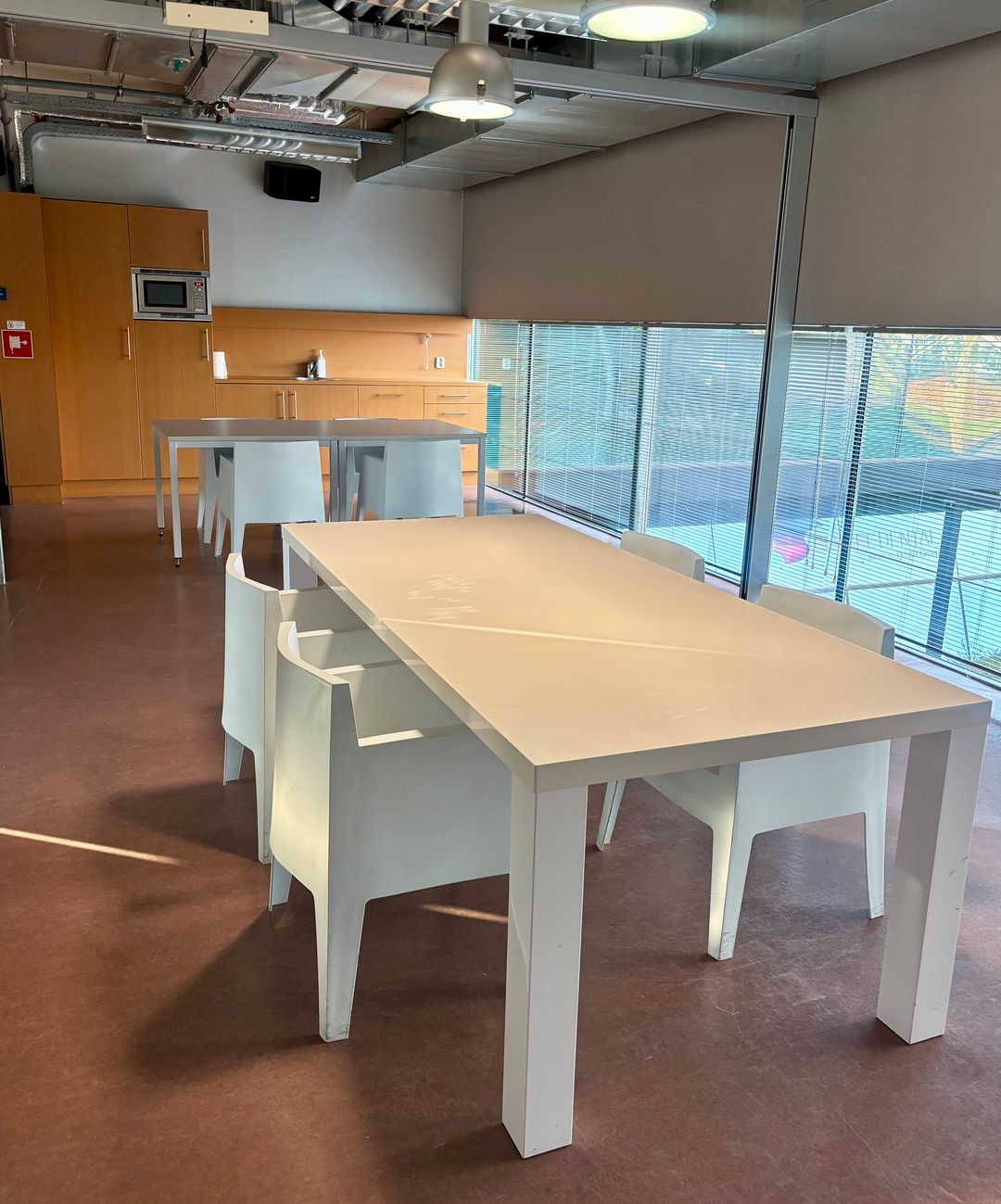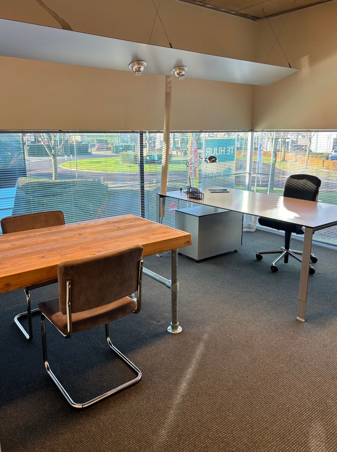 Er zijn vijf kantoren die in grootte variëren en geschikt zijn voor zowel werkplekken als overleg. Er is een volledig ingerichte pantry aanwezig, voorzieningen voor ICT, opbergruimte en overal raambekleding. Er wordt gebruik gemaakt van de centrale toiletten op de begane grond evenals de naastgelegen centrale vergader/presentatieruimte met kantine.