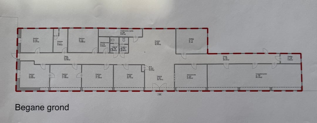 Indeling object : ca. 400 m² VVO kantoorruimte op begane grond met kantine voorzien van een keuken alsmede een toilet.