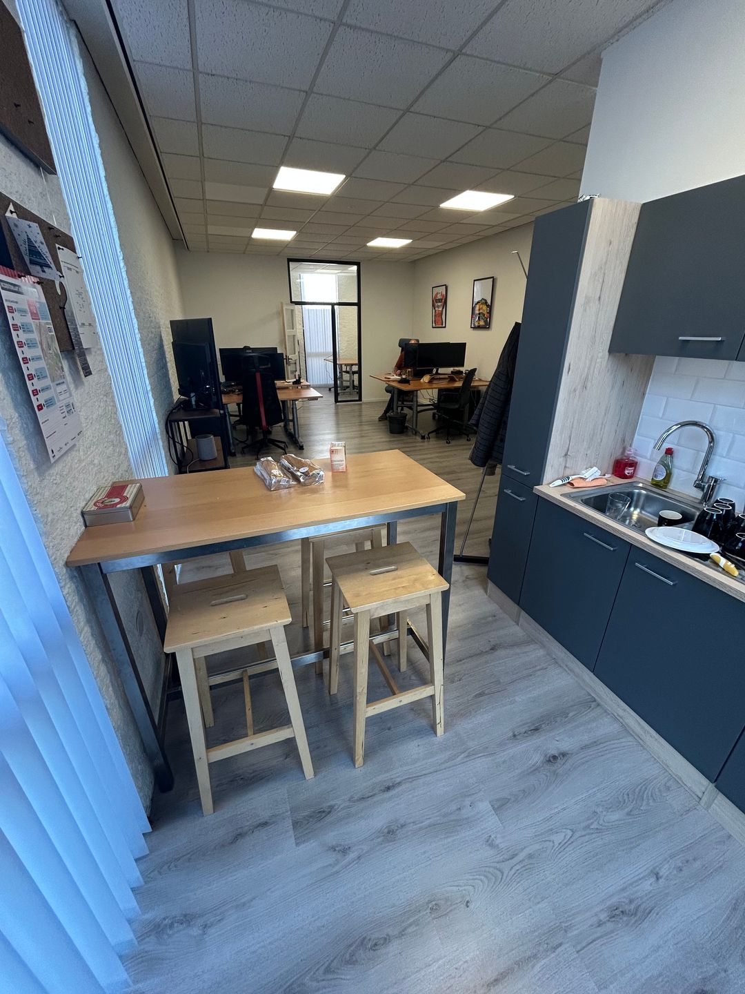 Het object is een geheel zelfstandig kantoor met een oppervlakte van 61m² met eigen toegang, met eigen entree, toilet en kitchenette. Afwerking met laminaat vloeren, verlaagde plafonds en verlichting, data. Dit gedeelte beschikt over een ruime parkeergelegenheid op eigen voorterrein.