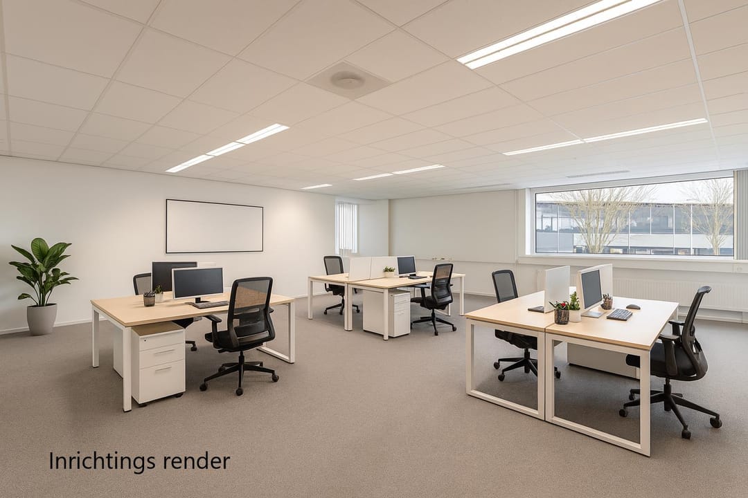 Unit 1: 110 m² kantoorruimte, modern en licht, geschikt voor diverse kantoorinrichtingen.