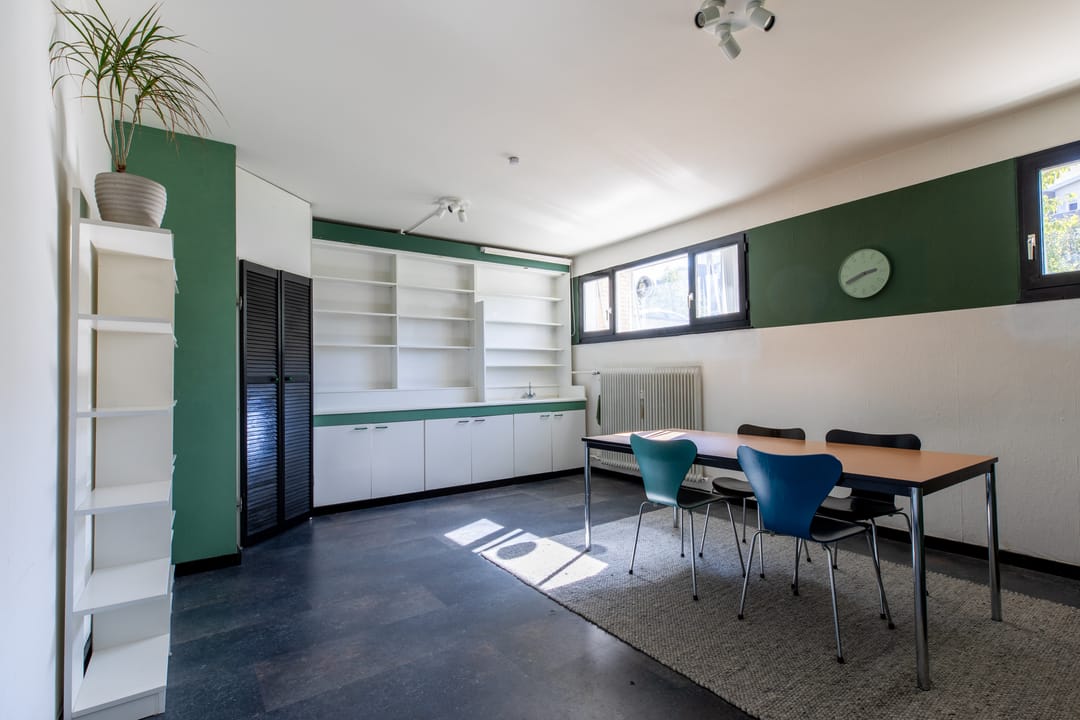 De ruimte is gunstig opgedeeld in twee vertrekken waarbij de eerste dienstdoet als werk- c.q.