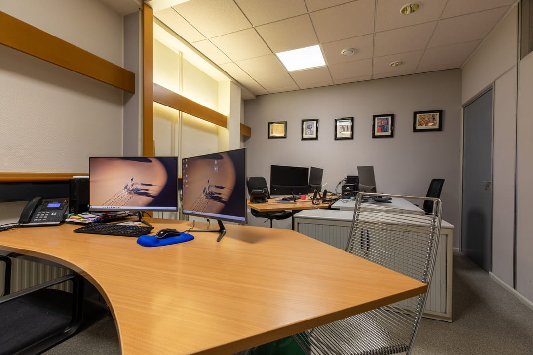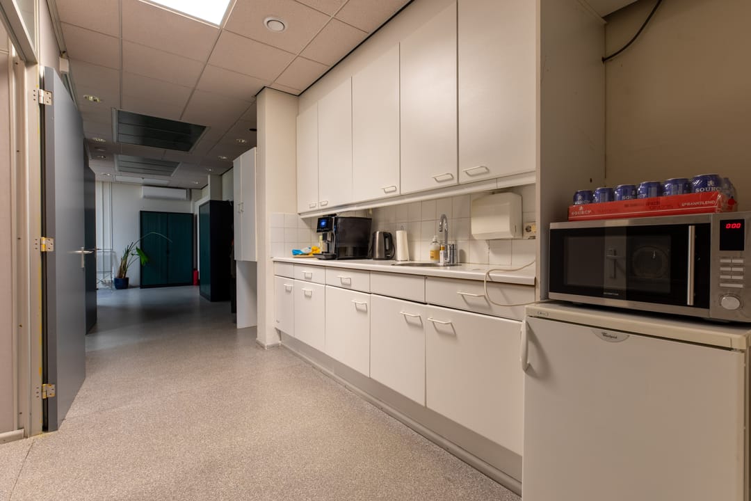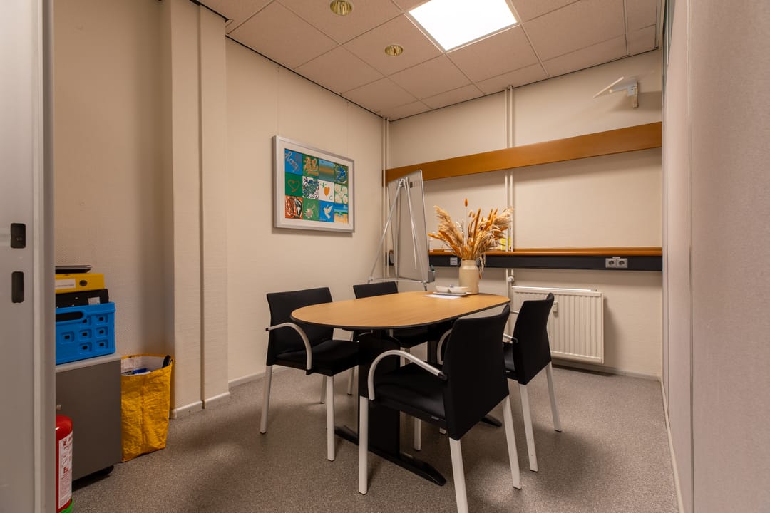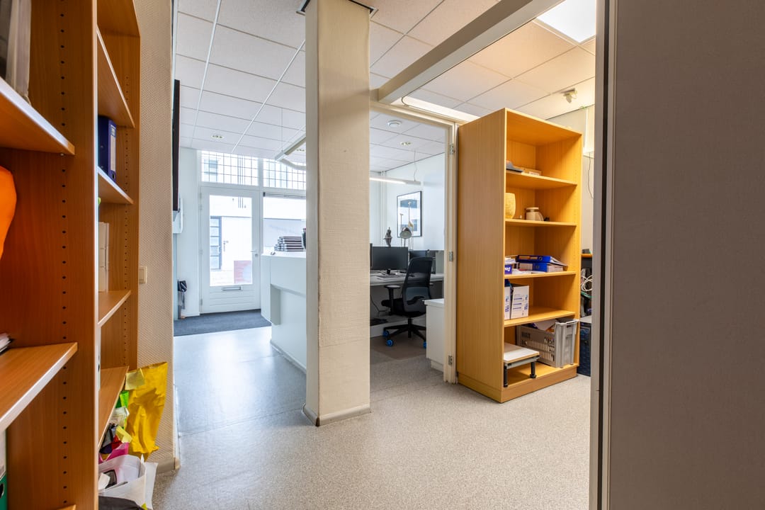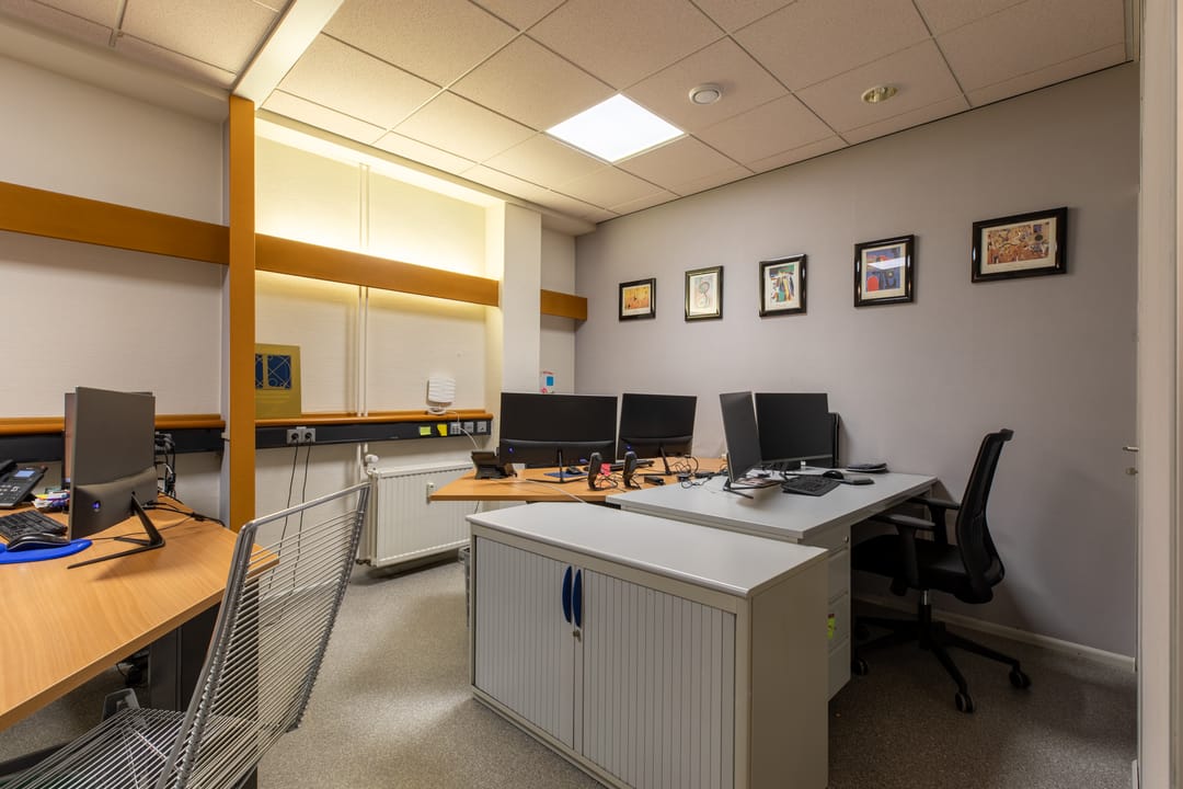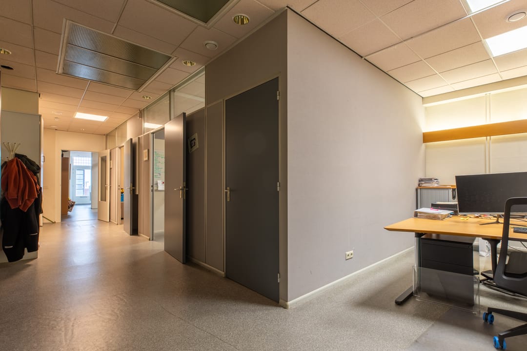 De kantoorruimte is praktisch ingedeeld en voorzien van alle benodigde faciliteiten voor een moderne werkomgeving.