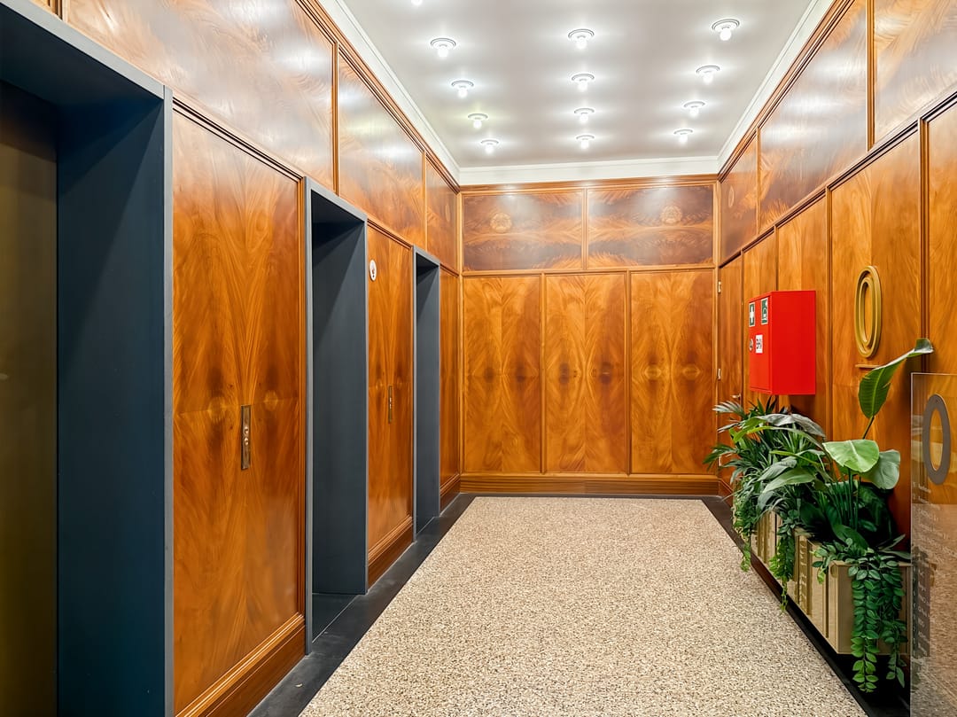 - Air conditioning, built-in fittings, elevators, windows can be opened, cable ducts, modular ceiling, toilet, pantry, heating and room layout