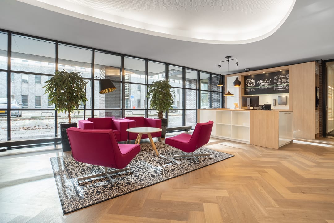 Achter de eigenzinnige buitenkant van Randwyck zit een ruim interieur met hier en daar wat kleur en veel daglicht dankzij de muurhoge ramen. Neem na een succesvolle dag uw team mee naar de bruisende openluchtbars van de nabije wijk Céramique.