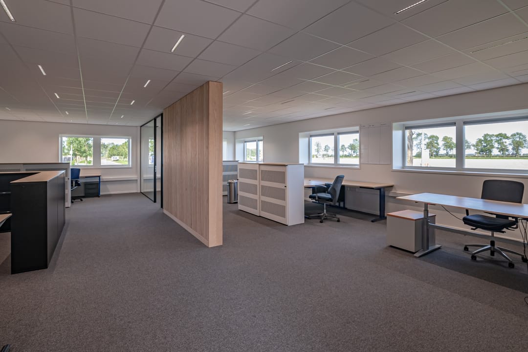 De kantoorruimte is geheel geïsoleerd en voorzien van HR++ en Triple glas en uitgerust met een systeemplafond en kantoortapijt.