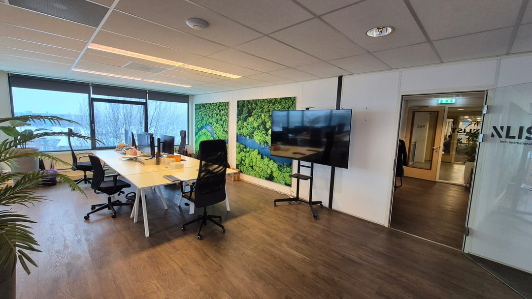 De ruimte kan zo worden betrokken en is voorzien vloerenbedekking, airconditioning, systeemplafonds met verlichting, scheidingswanden, etc.