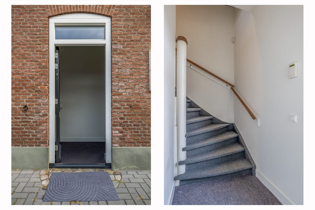 Het pand is verdeeld over twee verdiepingen, waarvan dit kantoor de eerste verdieping betreft. De verdieping heeft een eigen entree vanaf straatniveau, met direct bij binnenkomst een trap naar boven. Boven kom je uit op een ruime overloop met een nette pantry en een modern toilet.