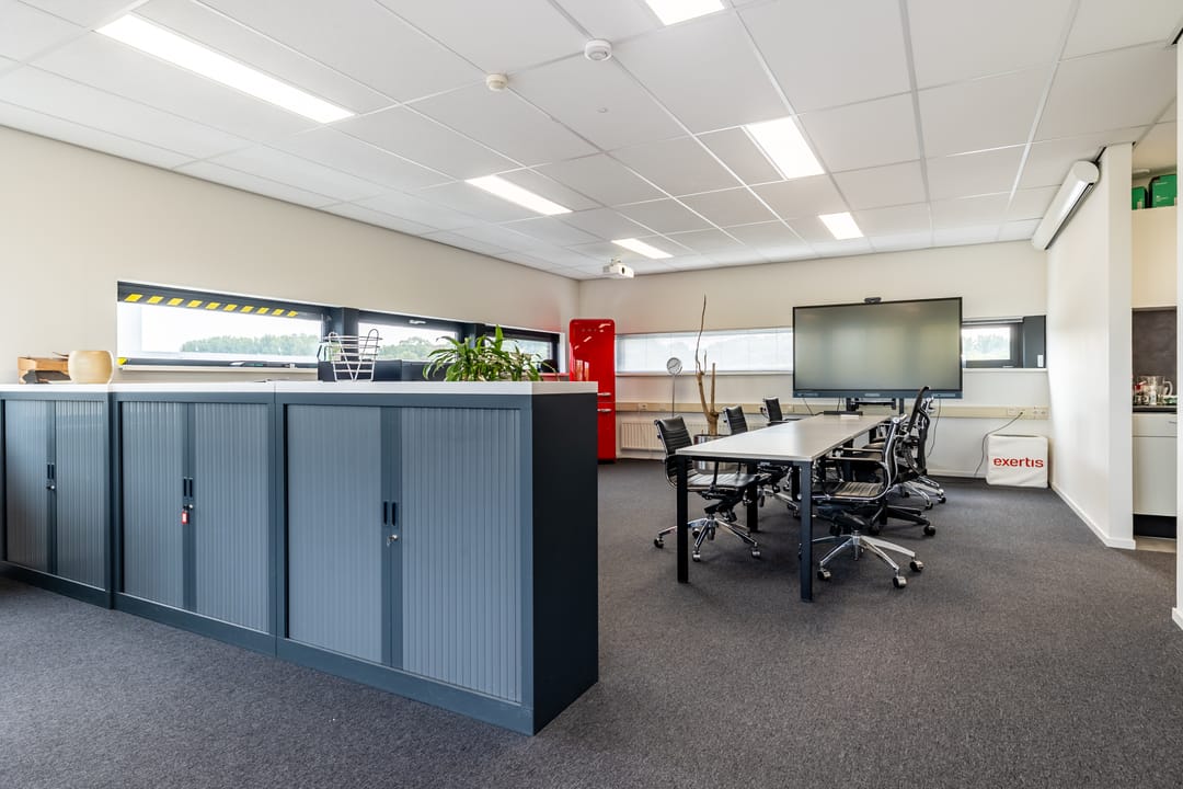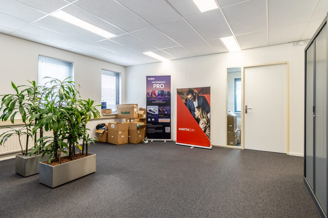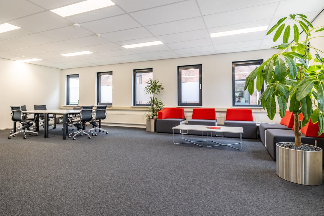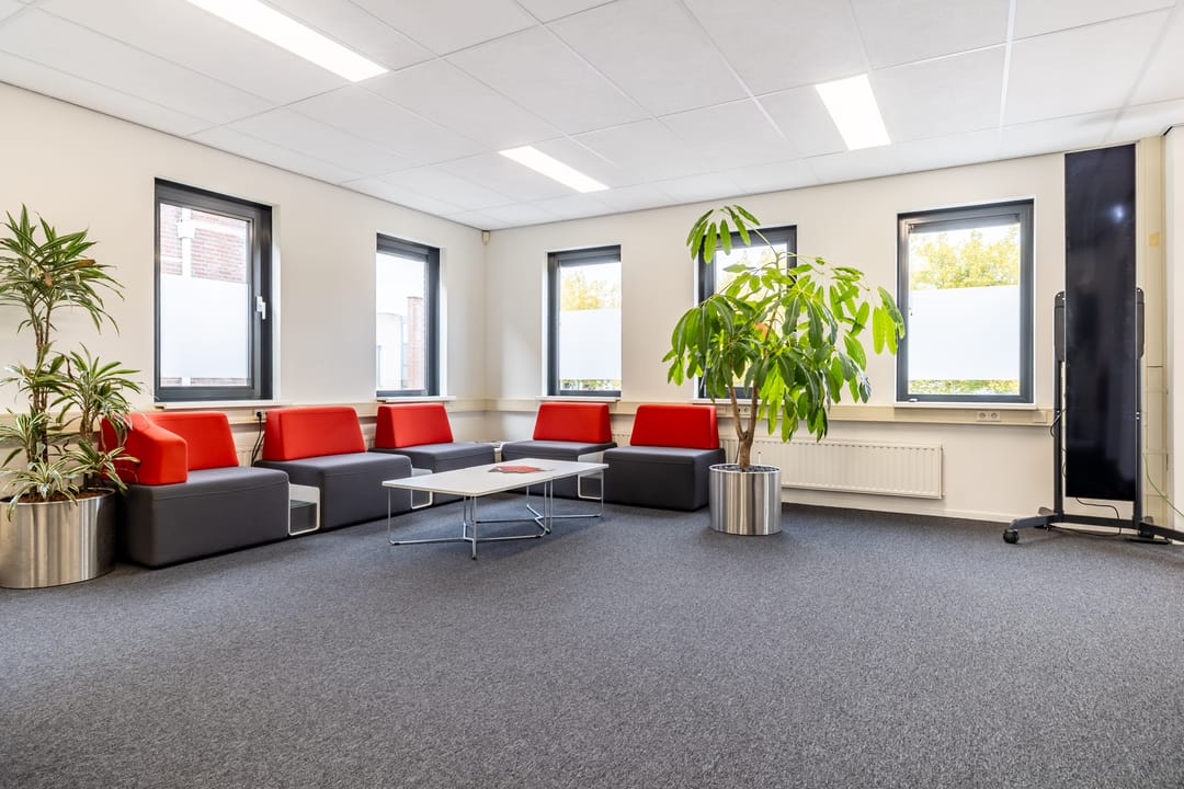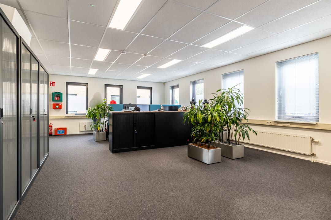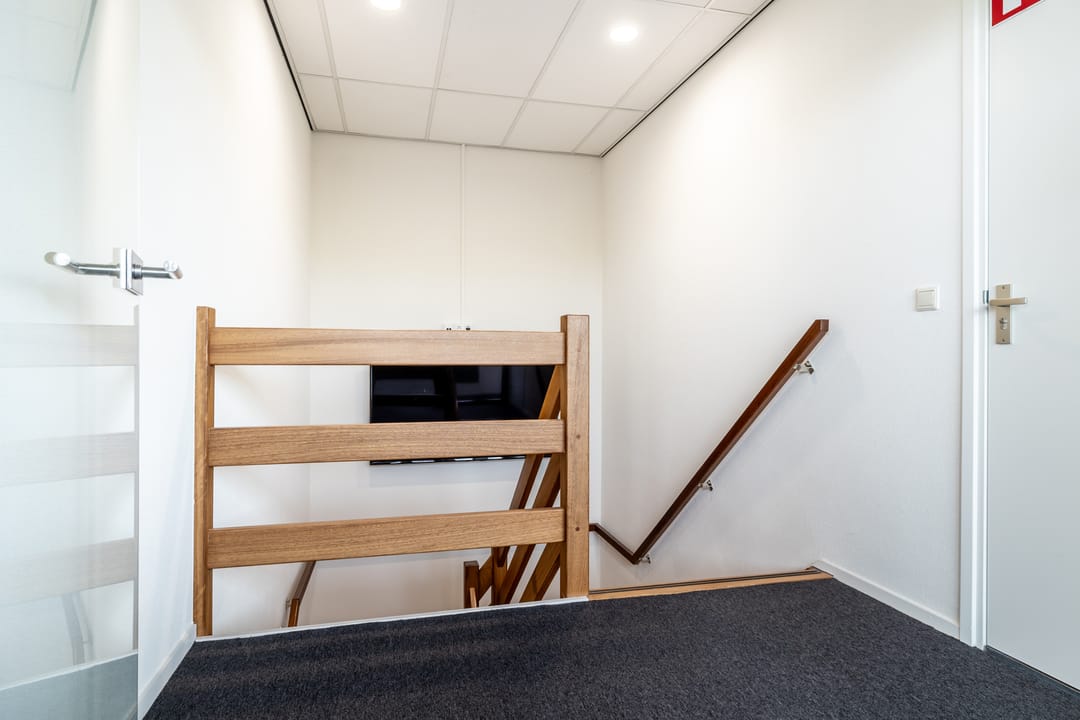 Entree die toegang geeft tot de begane grond, met de trapopgang naar de eerste verdieping. Deze is ingedeeld in twee grote open ruimtes en twee vergaderruimten, pantry, toiletgroep en magazijnruimte.
