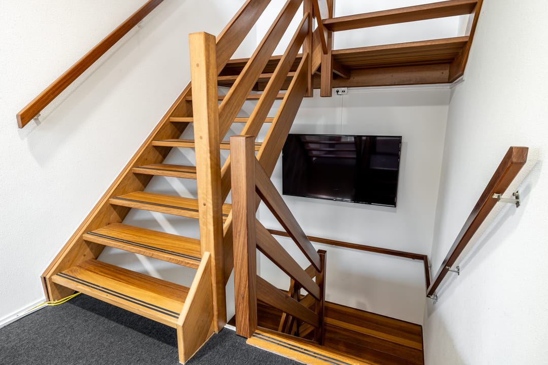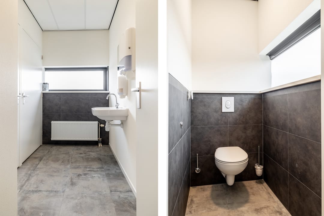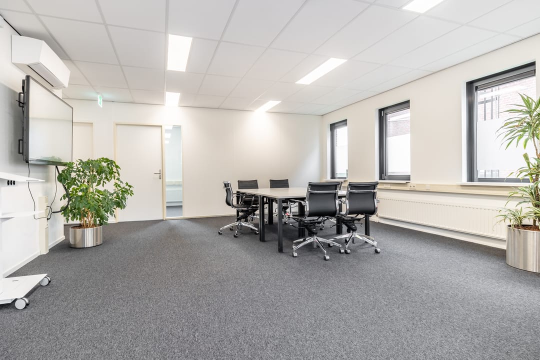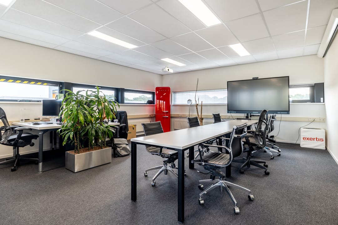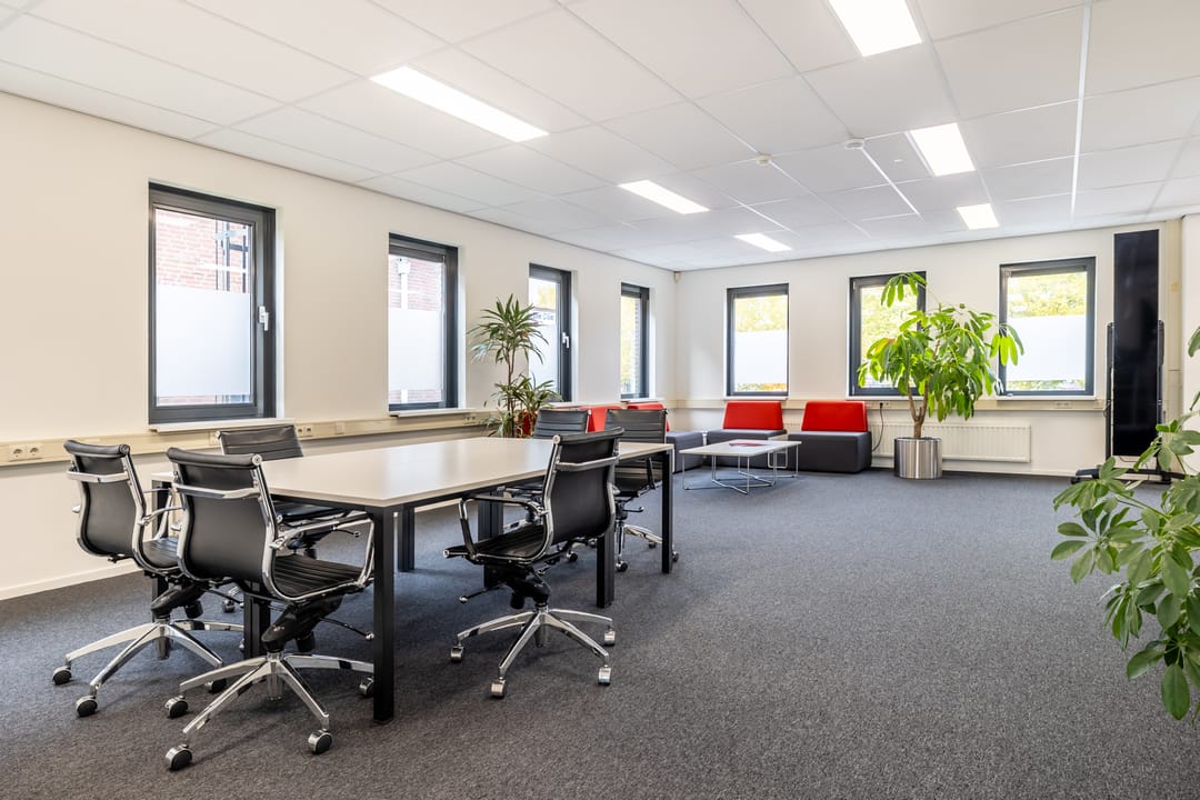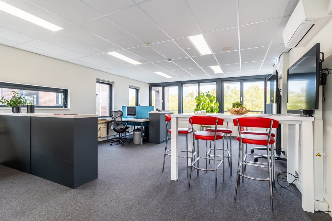 Entree die toegang geeft tot de begane grond, met de trapopgang naar de eerste verdieping. Deze is ingedeeld in twee grote open ruimtes en twee vergaderruimten, pantry, toiletgroep en magazijnruimte.