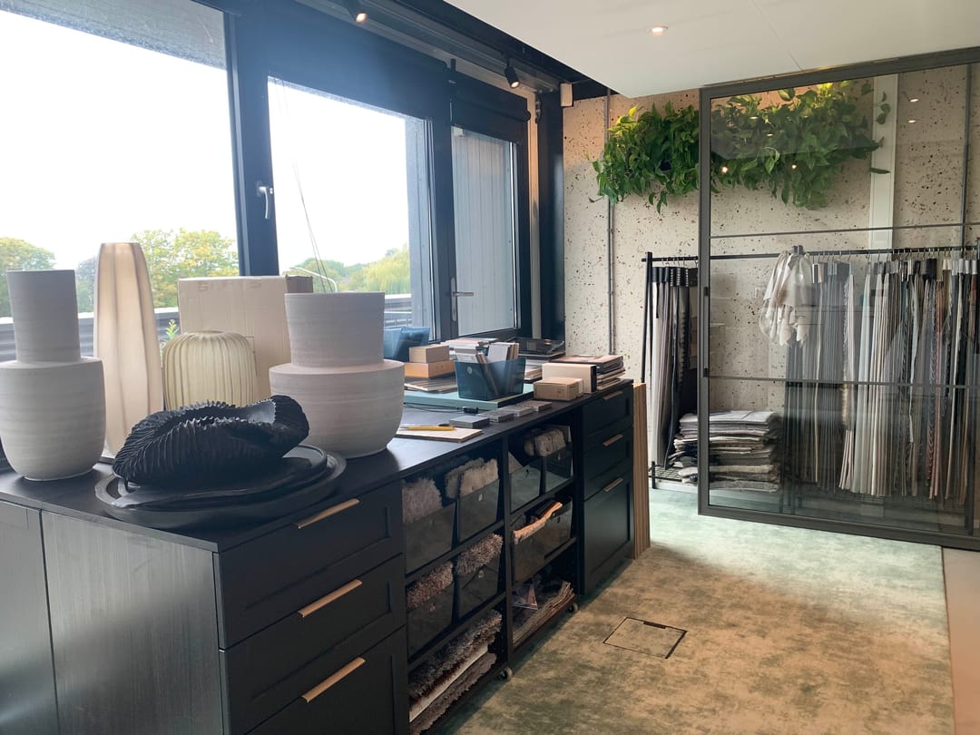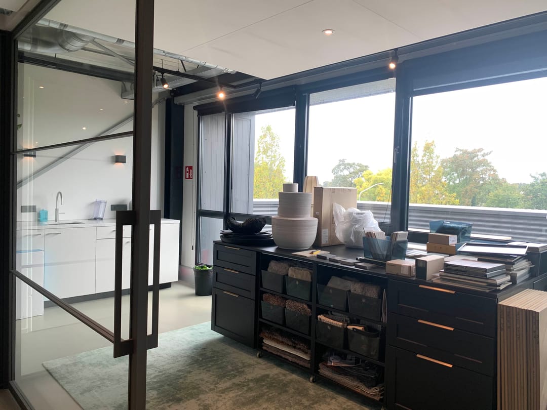 In het gebouw werken voornamelijk bedrijven en mensen die actief zijn in de inrichtingsbranche van kantoren en woningen.