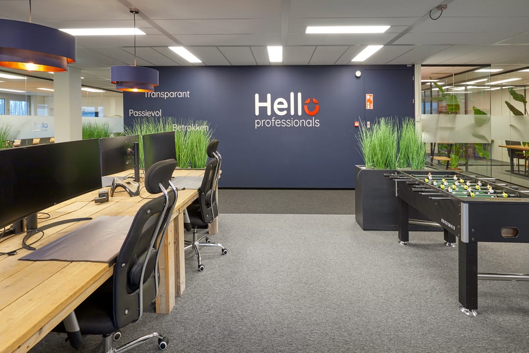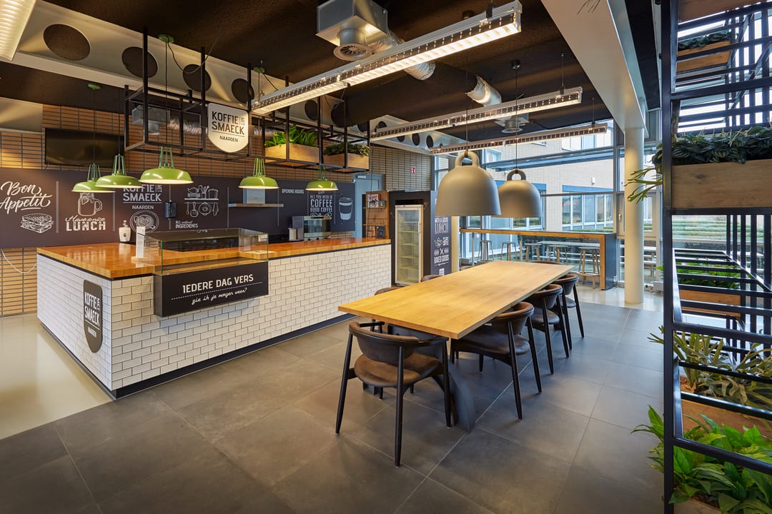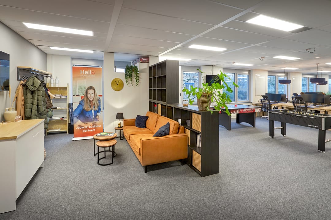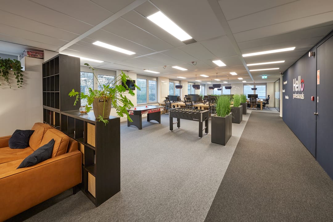 Doordat de pui ter hoogte van de entree volledig in glas is uitgevoerd, is de ontvangstruimte en het trappenhuis, eveneens voorzien van een dubbele liftinstallatie, zeer licht. In combinatie met de horecafaciliteiten die worden aangeboden in de centrale entree op de begane grond maakt dat deze, representatieve, ontvangstruimte eveneens kan worden gebruikt voor een informeel kopje koffie of een lunch met uw relaties en/of medewerkers.