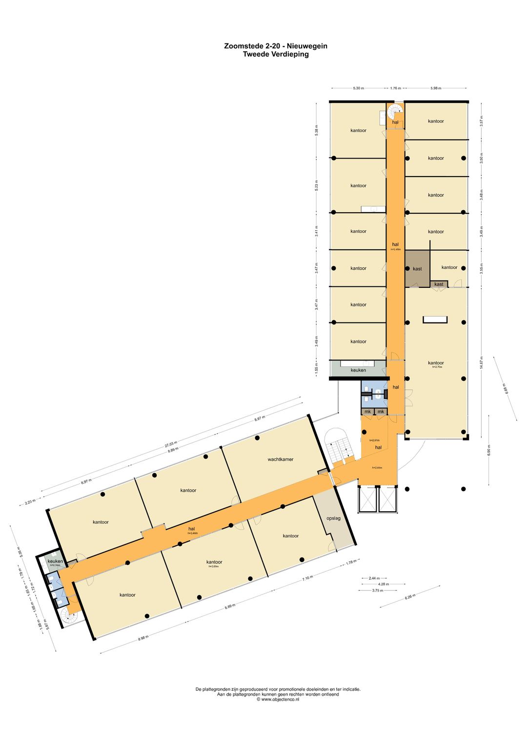 Het totale kantoorgebouw bestaat uit circa 3.750 m² verdeeld over 5 verdiepingen, hiervan is momenteel circa 1.742 m² beschikbaar voor de verhuur, verdeeld over de 2e, 3e en 4e verdieping.