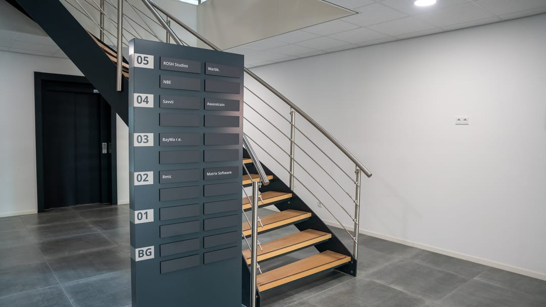 - Twee vluchttrappenhuizen aan beide zijden van het gebouw uitgevoerd in beton.