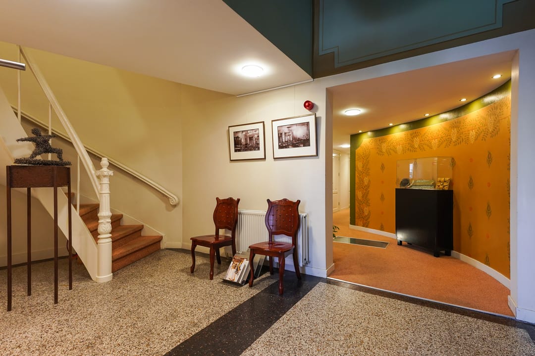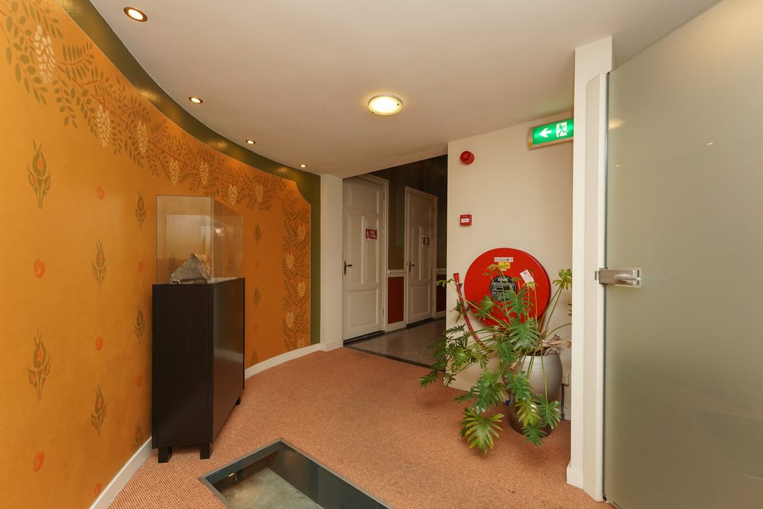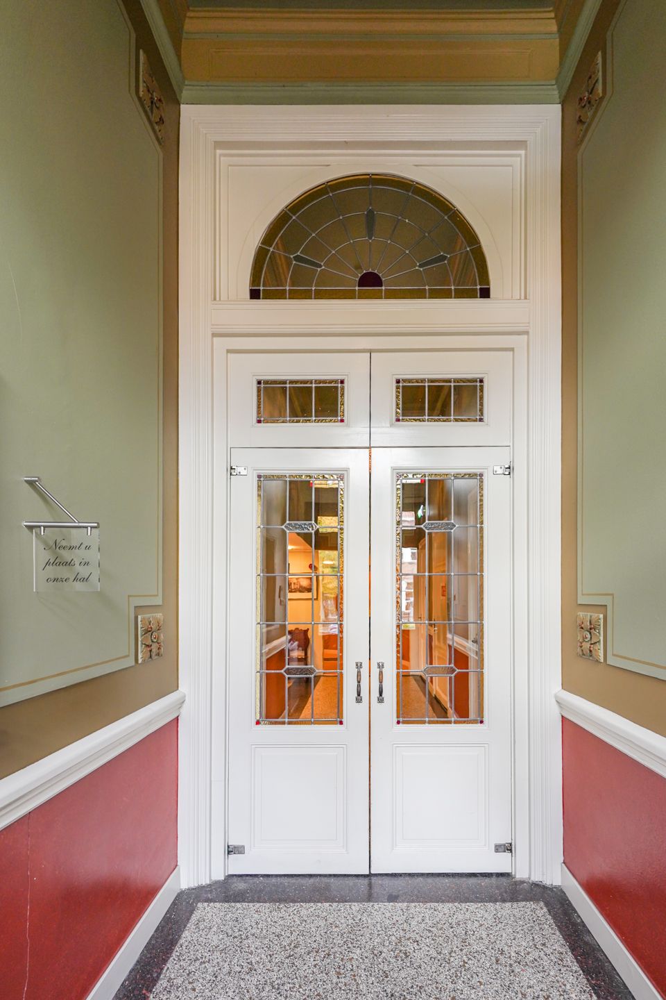 Al bij binnenkomst waant u zich in een andere tijd en weet u waarom u hier graag uw kantoor wilt vestigen. De entree / ontvangsthal is voorzien van prachtige muur- en plafondschilderingen, ornamenten en glas-in-lood.