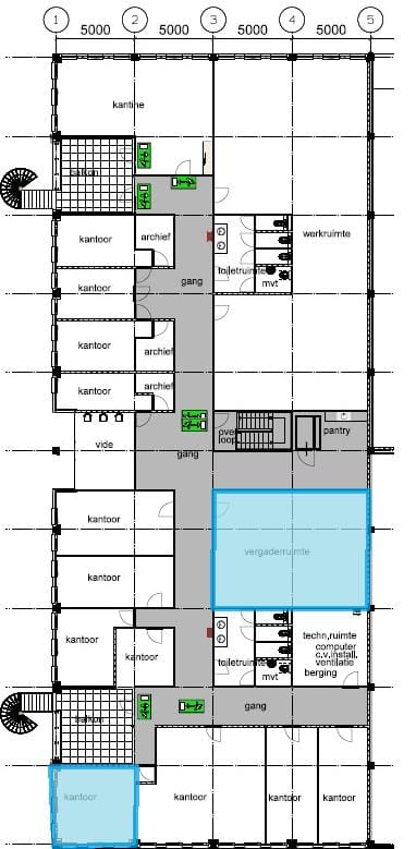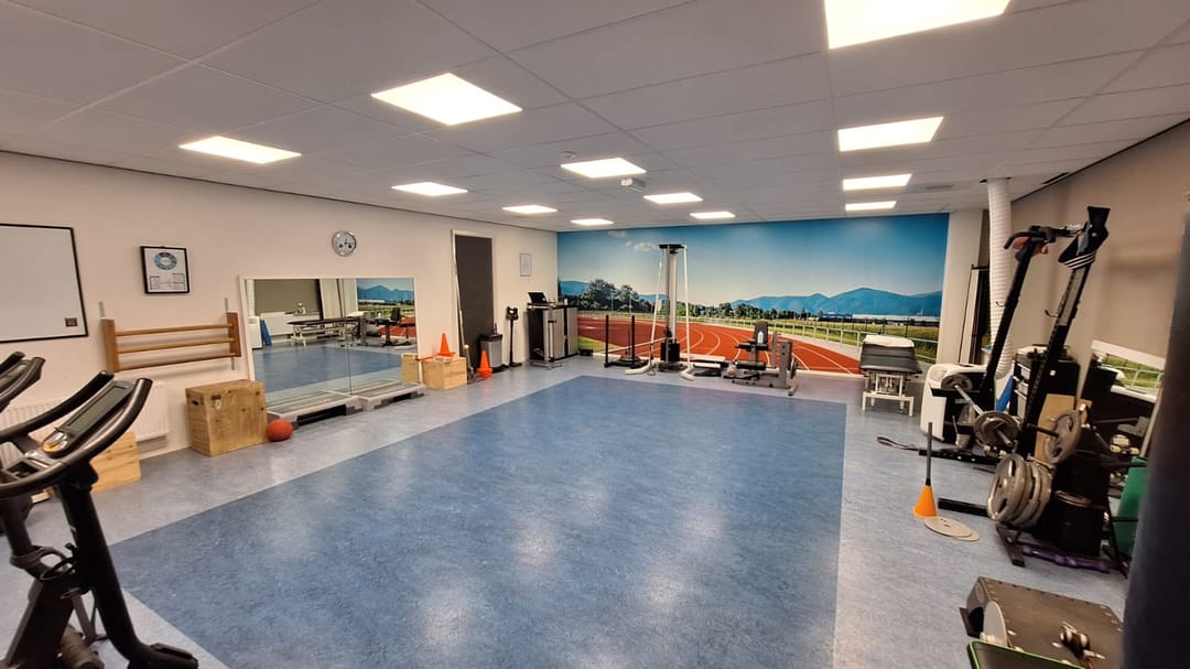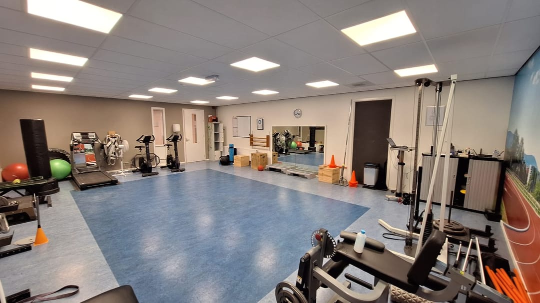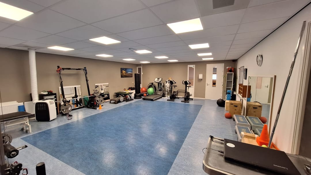 De beschikbare ruimte is gelegen op de 1e verdieping en bestaat uit twee delen: een hoekkantoor van circa 25m² dat thans in gebruik is als kantoor-/behandelruimte, en een inpandige ruimte van circa 75m² die momenteel dienstdoet als oefenruimte.