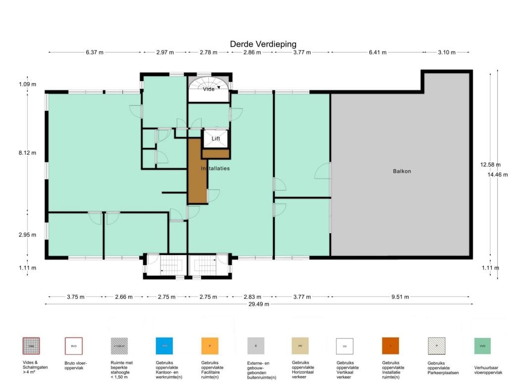 Het metrage is niet vastgesteld middels een NEN-2580 meetrapport en is vastgesteld op basis van inmeting op locatie.