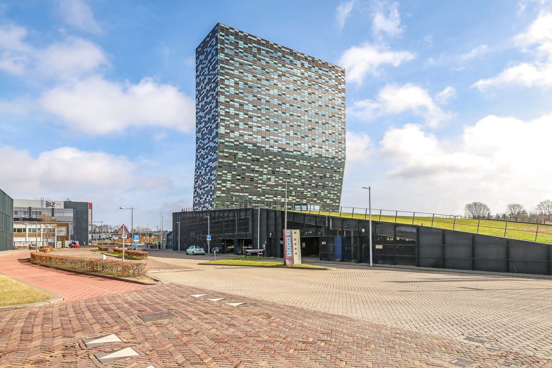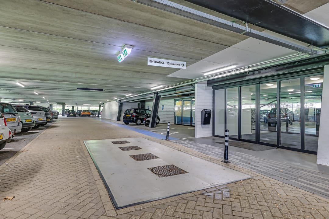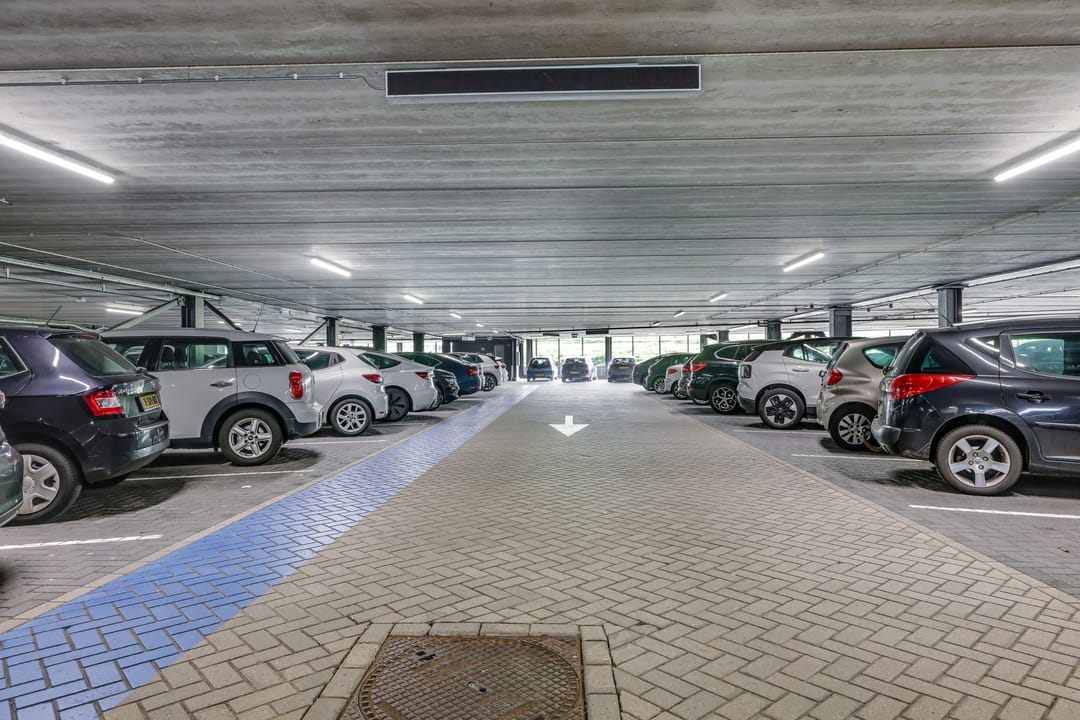 Onder het gebouw bevindt zich een ruime parkeergarage waar (betaald) kan worden geparkeerd.