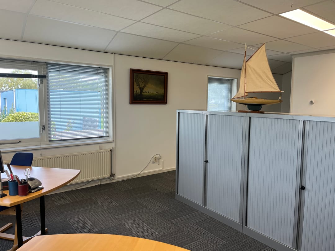 Het object is ca. 63m2 groot en te gebruiken als kantoorruimte met kleine oplsagruimte. Tevens keuken en toilet.