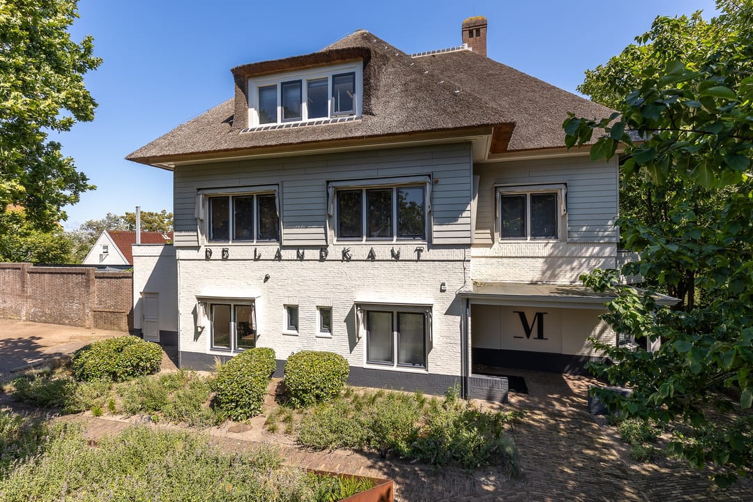 Op uitstekende locatie in de Noordwijkse Zuidduinen gelegen bevindt zich deze vrijstaande rietgedekte kantoorvilla "De Landkant" met oprijlaan, vrijstaand rietgedekt bijgebouw, carport, riant parkeerterrein met 25 parkeerplaatsen en tuin. Deze voormalige burgemeesterswoning is oorspronkelijk gebouwd in 1925, maar in de loop der tijd gerenoveerd en gemoderniseerd. Tevens is dit unieke object zeer geschikt voor particuliere bewoning.