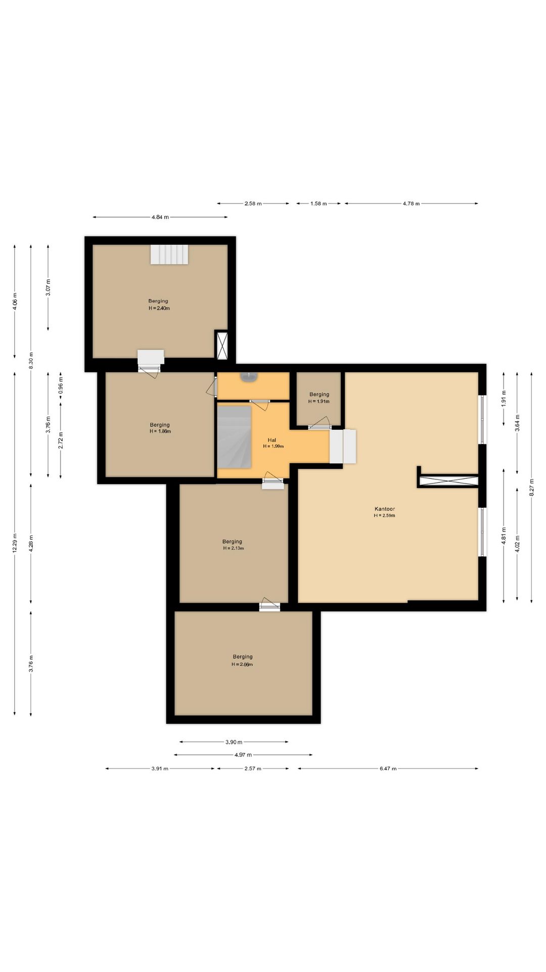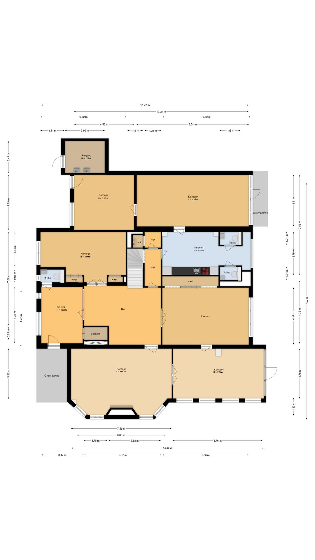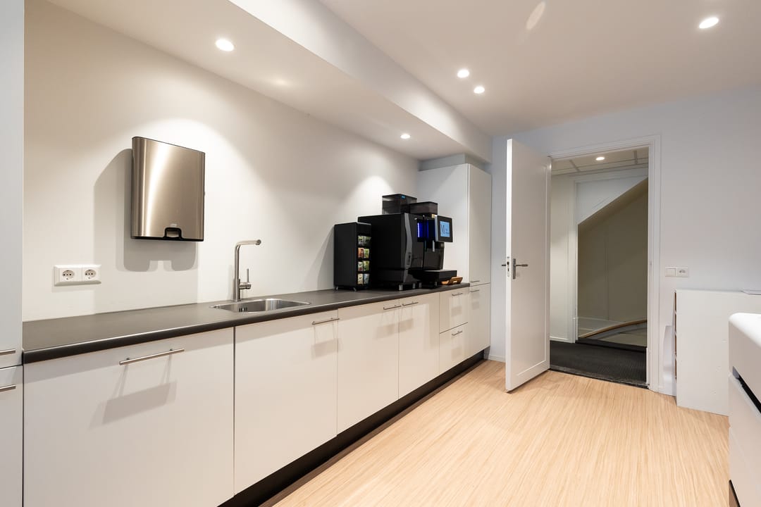 De 1e verdieping bereikt u via de bordestrap en daar vindt u diverse kantoorvertrekken, een technische ruimte en een toilet en pantry. Via de bordestrap bereikt u tevens de 2e verdieping met 3 kantoorruimtes, toilet en pantry. In het koetshuis is er een entree, lunch-/vergaderruimte met tegelvloer en een luxe afgewerkte keuken, CV-ruimte, toilet en garderobe.
