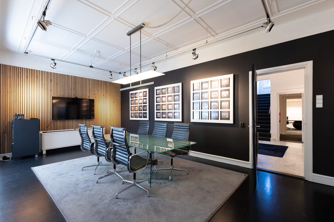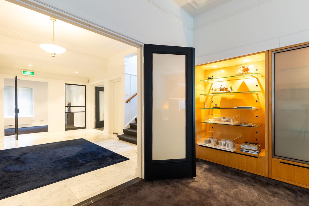 Het hoofdgebouw heeft een entree, ruime ontvangsthal, toilet, receptie, garderobekast, woonkamer/kantoorvertrek met open haard, serre/kantoor, vergaderruimte, ruim L-vormig kantoorvertrek, een kantoorkamer en een berging/stookruimte met 2 CV-gasketels van het merk Atag. In het souterrain bevinden zich diverse kantoor-/archiefruimtes.