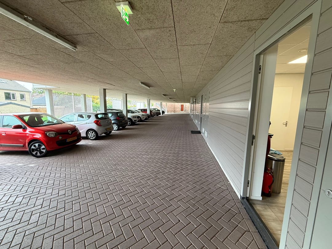 BESCHIKT OVER ÉÉN OVERDEKTE PARKEERPLAATS OP HET AFGESLOTEN BINNENTERREIN