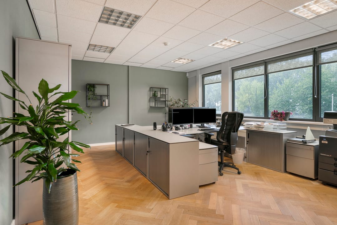 De parkeergelegenheid is naast het kantoorgebouw gelegen.