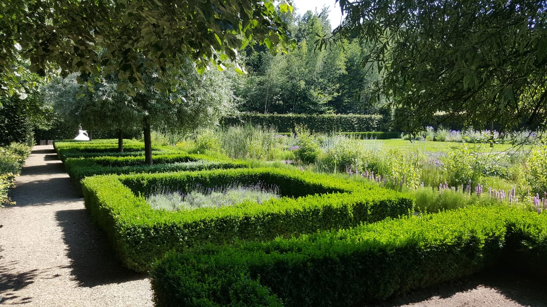- bloementuin, moestuin, kruidentuin, boomgaard, bostuin, vijvers en een park;
