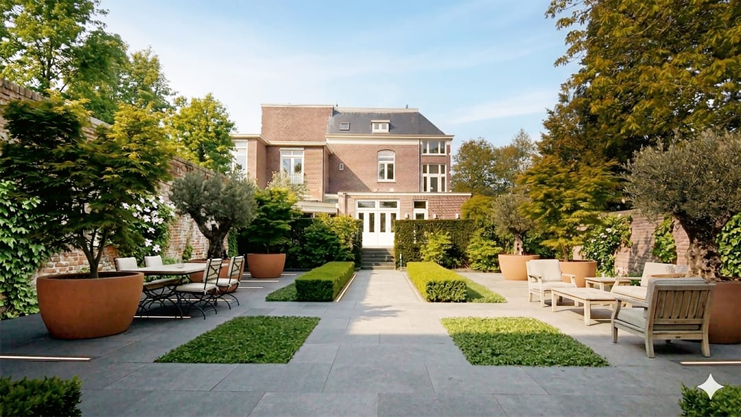 Uniek is de enorme achtertuin van tientallen meters diep, ideaal gesitueerd op het zuiden.