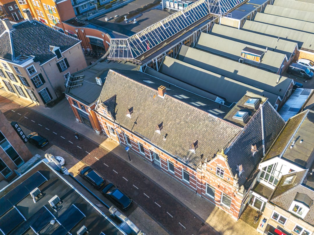 De moderne aanbouw vormt een sterk contrast én een logische aanvulling: eigentijds van opzet, transparant en functioneel, met directe verbindingen naar het winkelcentrum en de openbare ruimte. Hierdoor leent dit deel zich uitstekend voor detailhandel, showroomconcepten of publieksgerichte kantoorfuncties, al dan niet in combinatie met het monumentale gedeelte.