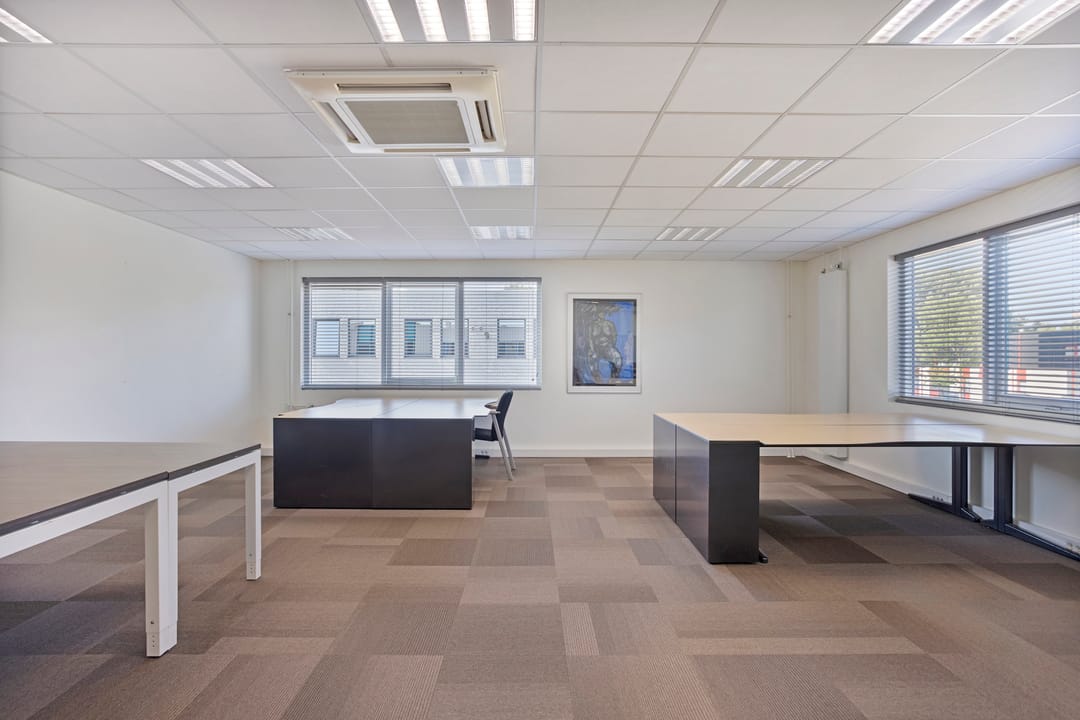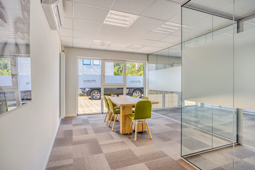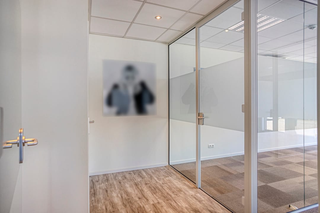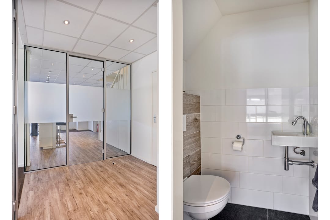 De kantoorruimtes op de eerste verdieping bestaat uit een grote ruimte waar met kleine bouwkundige aanpassingen verschillende kantoorvertrekken gerealiseerd kunnen worden. Er is ook een apart kantoor/werkruimte en een groter kantoor wederom voor meerdere werkplekken. Tevens bevind zich op de eerste verdieping een afgesloten server/kopieer ruimte.