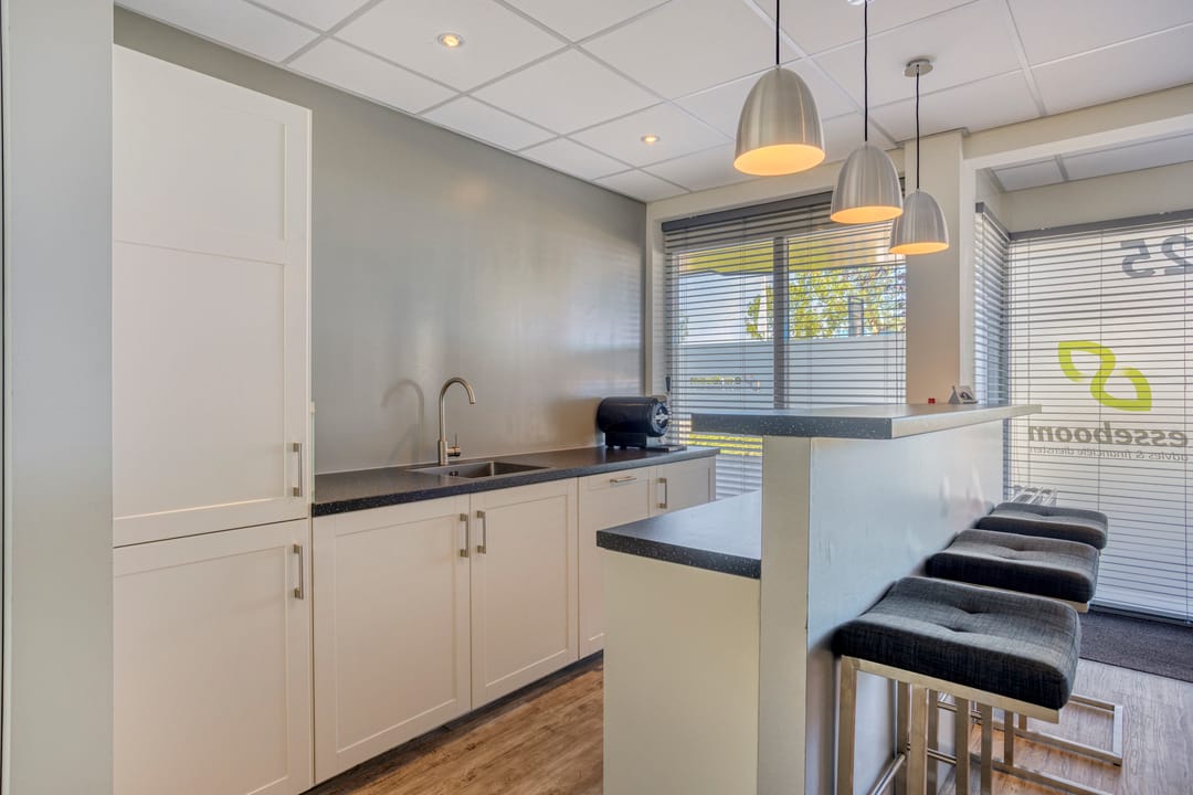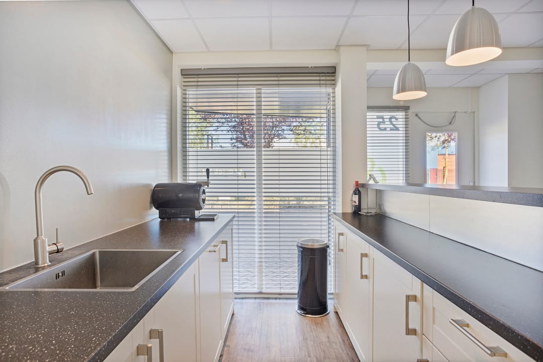 De kantoorruimtes op de begane grond zijn ideaal in gebruik als ontvangstruimte of conferentiekamer. Op de begane grond bevind zich tevens de complete keuken met bar.