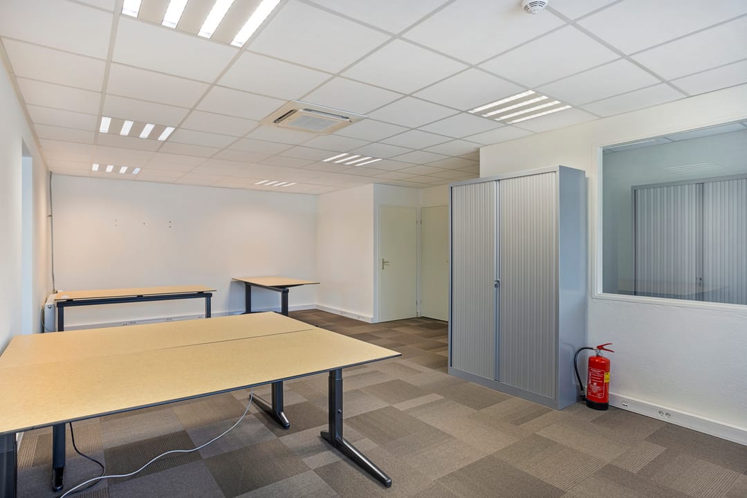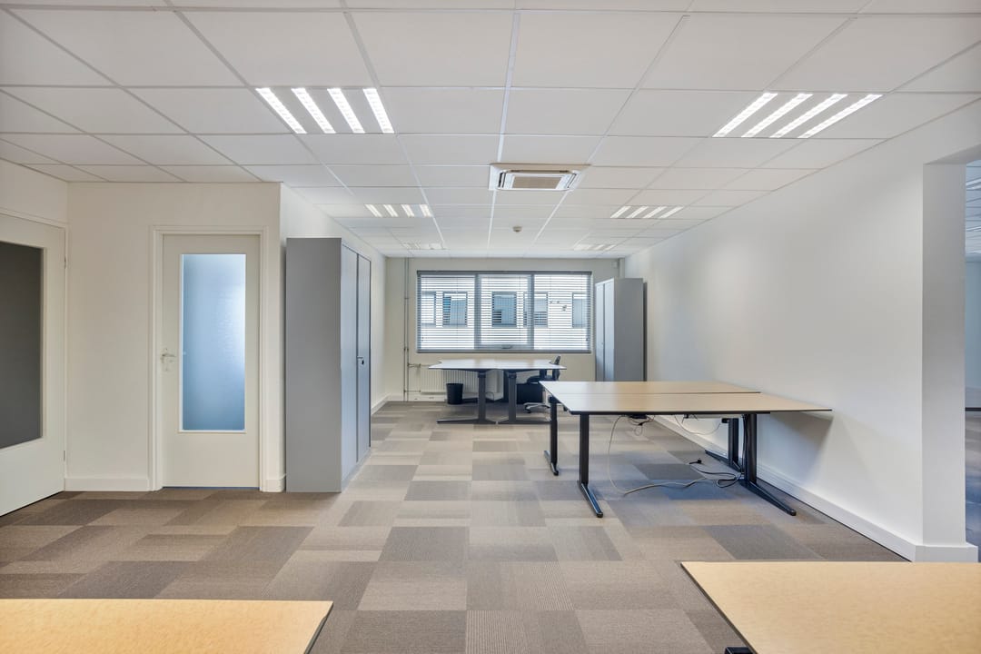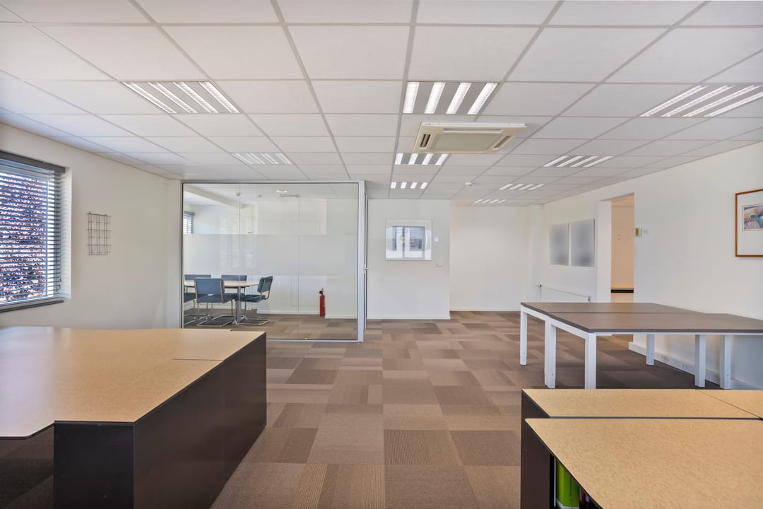 - systeemplafond met Led verlichtingsarmaturen in de kantoorruimte;