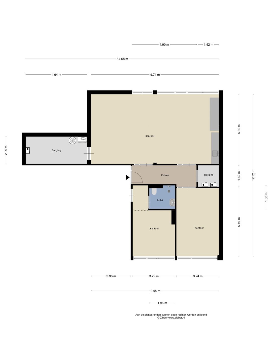 Indien gewenst is uitbreiding mogelijk. Een extra kantoorruimte, direct grenzend aan de sanitaire voorzieningen, is optioneel beschikbaar voor verhuur. In onderling overleg kan hierbij een tussenwand worden gerealiseerd tussen de sanitaire voorziening en deze ruimte.