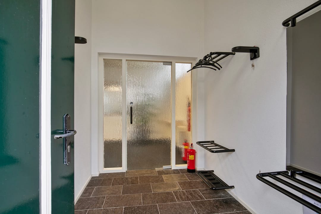Via een tussenhal er een bergruimte, een dubbele toiletgroep en de keuken bereikbaar.