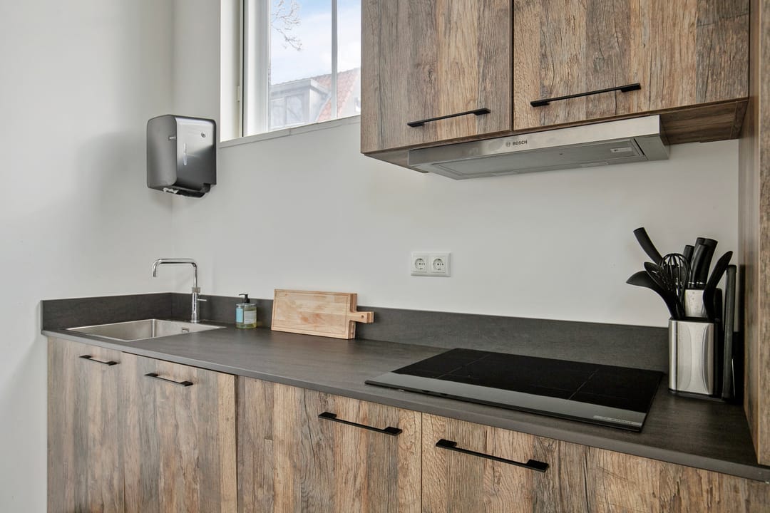 De toiletgroepen zijn recent geheel vernieuwd. Dit geldt ook voor de aan de achterzijde van het pand gesitueerde moderne keuken. De keuken heeft een ruime opstelling met vaatwasser, kookplaat, afzuigkap, hoge kastenwand en bartafel. Hier kan je heerlijk even ontspannen zitten. Ook is er toegang via openslaande deuren tot het achtergelegen vlonderterras. Hier kun je heerlijk in het zonnetje van je lunch genieten.