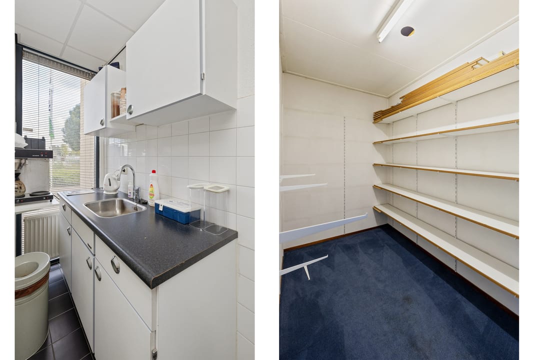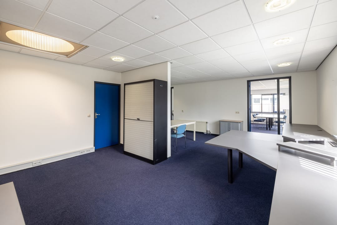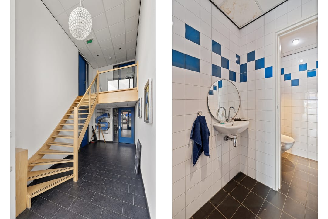 Ruime entree met trapopgang naar de eerste verdieping. Aan het einde van de entree/hal bevindt zich de toiletruime. Op de begane grond bevinden zich twee ruime kantoorkamers, een archiefruimte, bergkast en pantry.