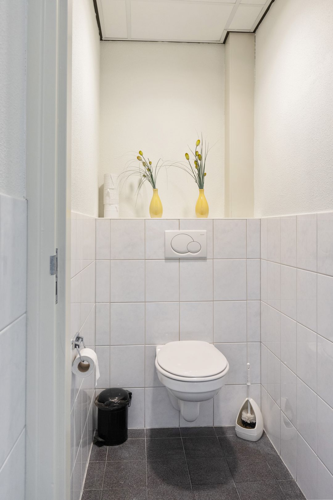Het totaaloppervlak van de kantoorruimte bedraagt circa 65 m² en is voorzien van vloerbedekking, systeemplafond en airco. De gemeenschappelijke ruimtes (overloop, hal, pantry en toilet) worden