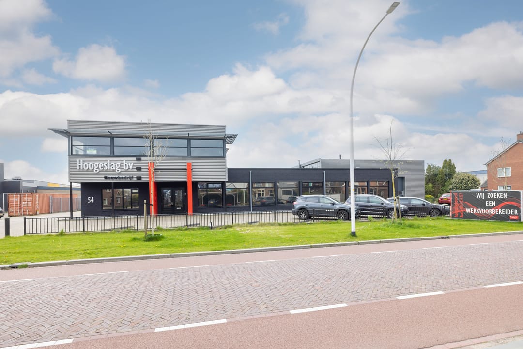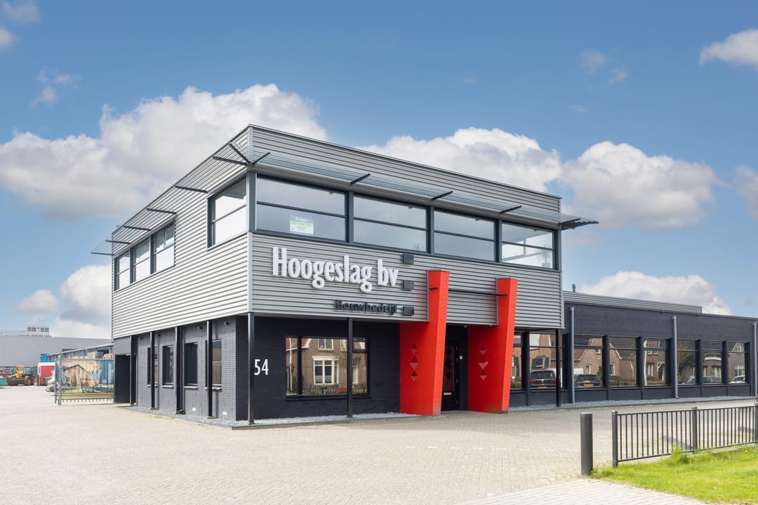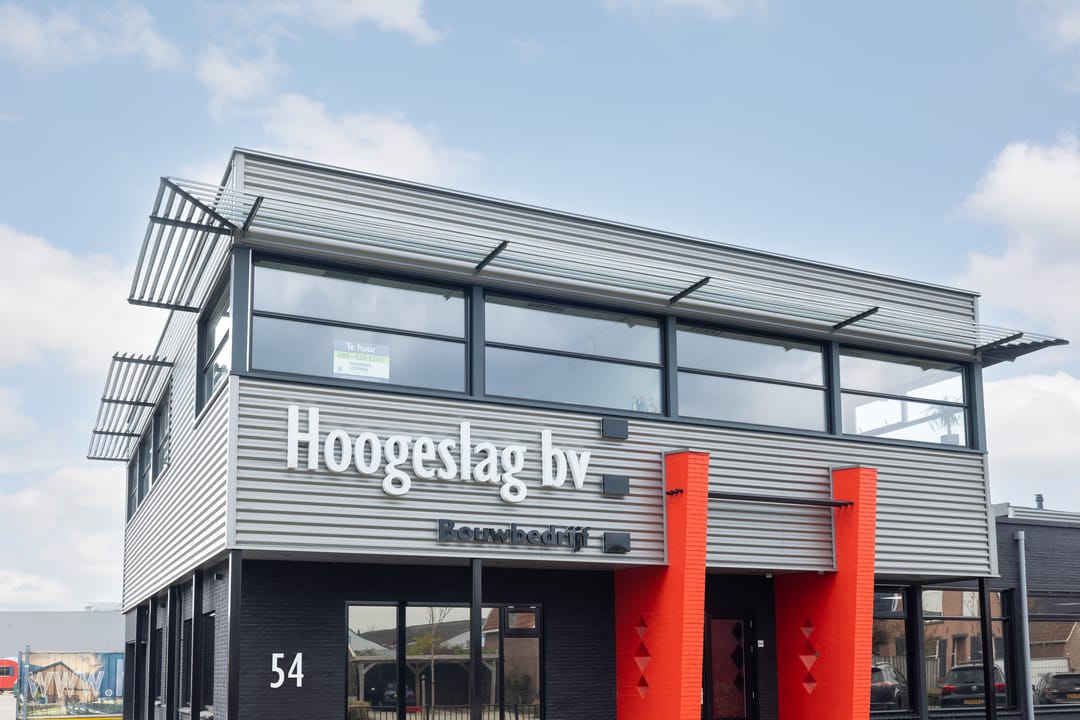 Deze nette kantoorruimte bevindt zich op de eerste verdieping in het gebouw van Bouwbedrijf Hoogeslag en beschikt over een eigen ingang aan de zijkant van het gebouw.