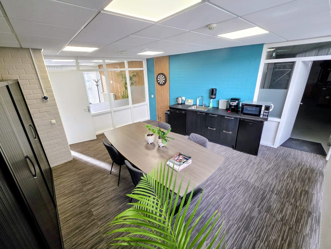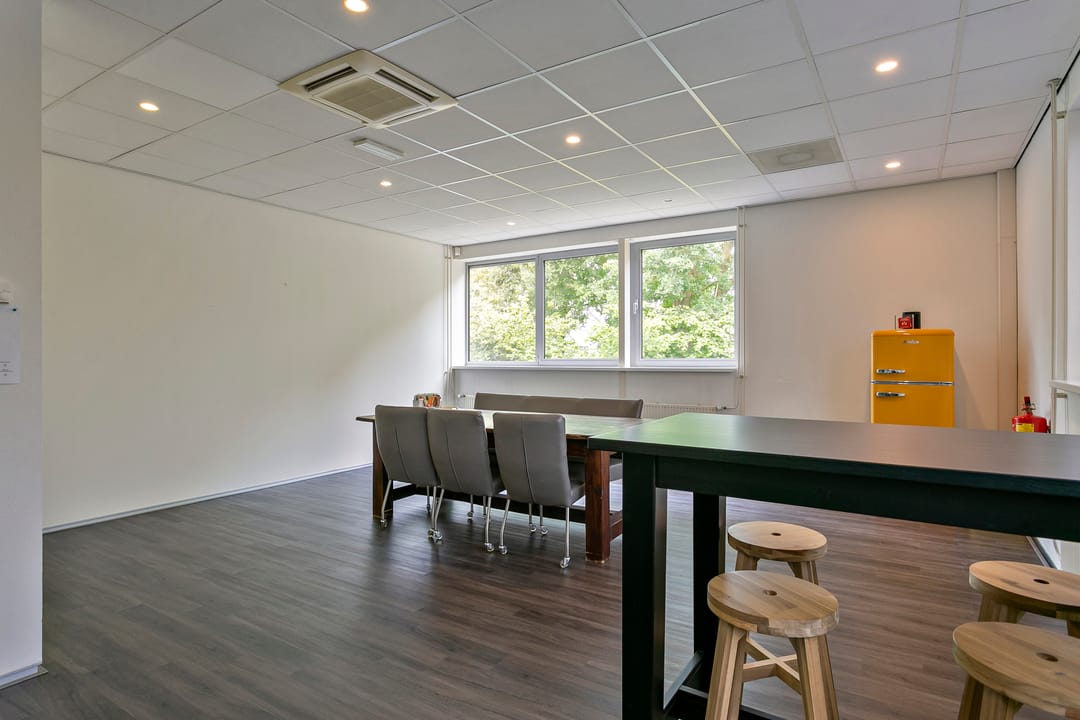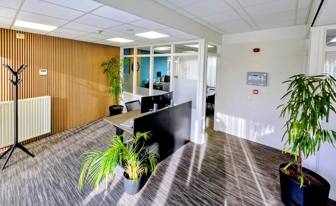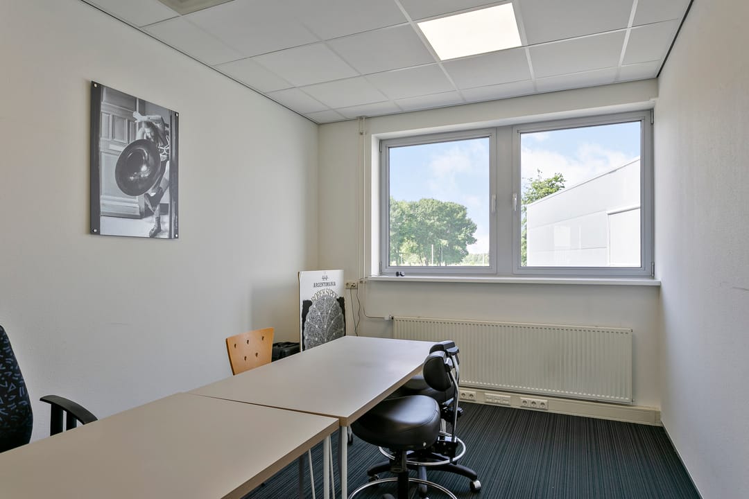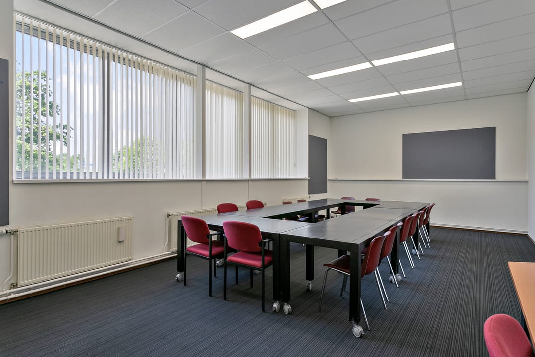 - Kantoorruimten zijn voorzien van vloerbedekking en lamellen;