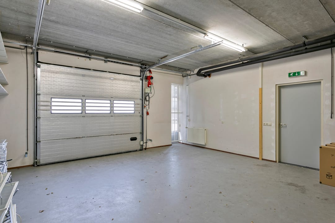 Diverse magazijn- en werkplaatsruimten met overhead roldeur, in delen te huur, ca. 100 tot 300 m². Vanaf €65,- per m² per jaar.