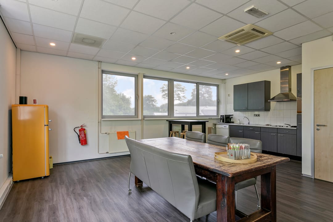 Ontvangstruimte, 7-tal kantoorruimten, kantine met pantry en toiletgroep, berging en vergaderruimte.