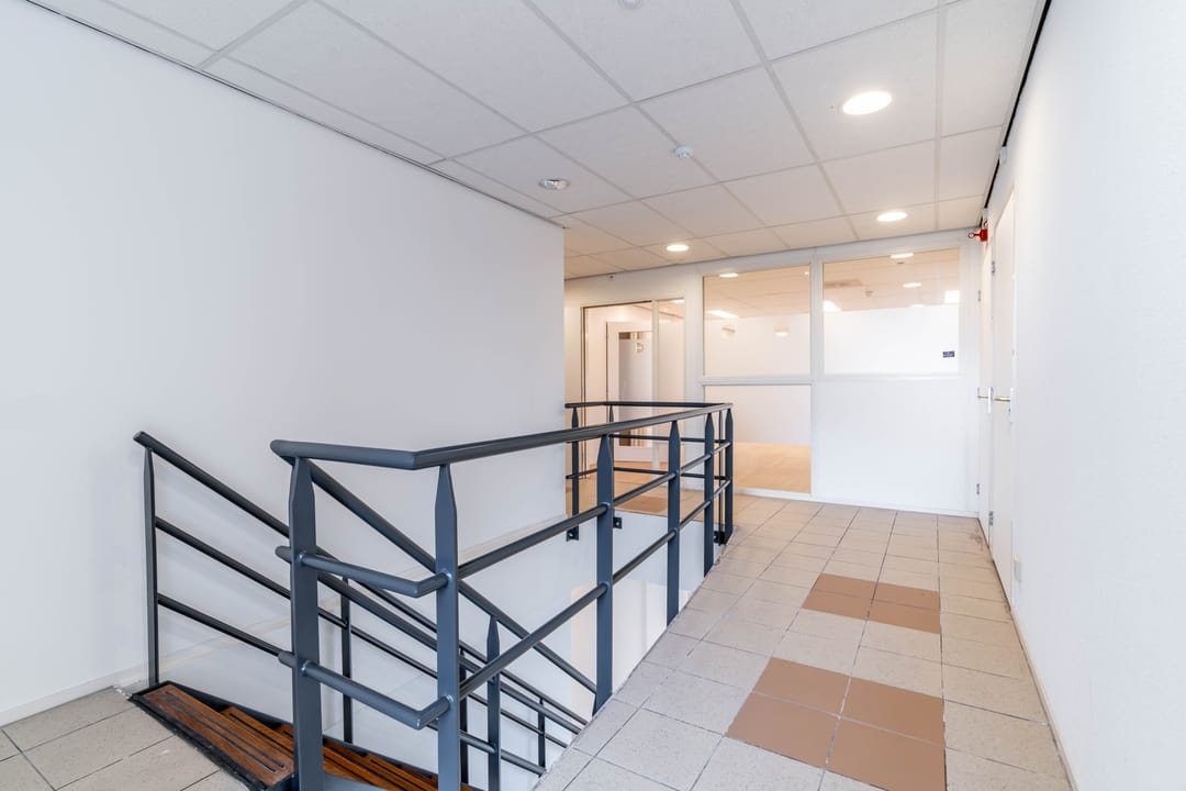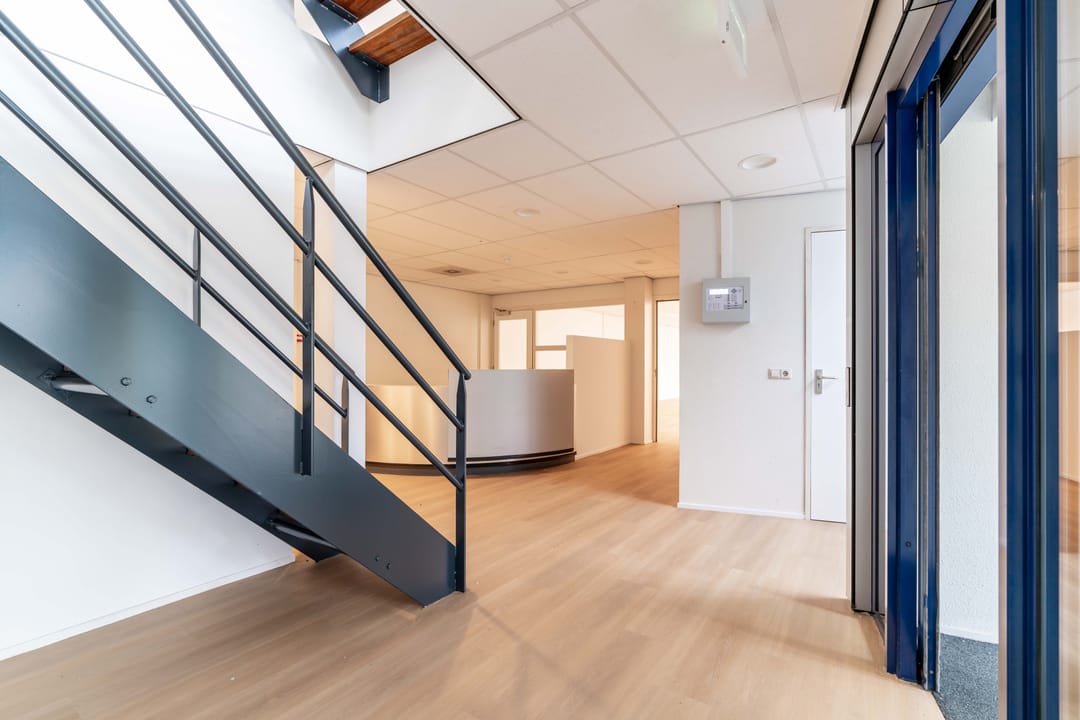 Het kantoorgebouw bevindt zich op een handige, centrale locatie langs de snelweg, waardoor het gemakkelijk bereikbaar is voor zowel medewerkers als klanten. De entreehal op de begane grond heeft een representatieve uitstraling, voorzien van een receptiebalie.