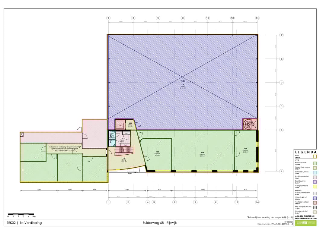 1e verdieping unit 1: ca. 263 m² BVO