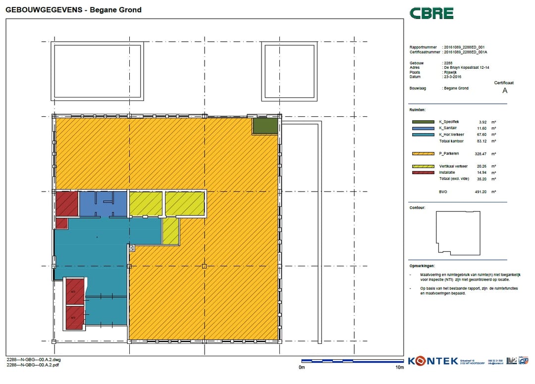 Metrage: De totale oppervlakte van het gebouw bedraagt circa 2.725 m² VVO kantoorruimte verdeeld over 6 kantoorverdiepingen en 2 parkeerlagen.