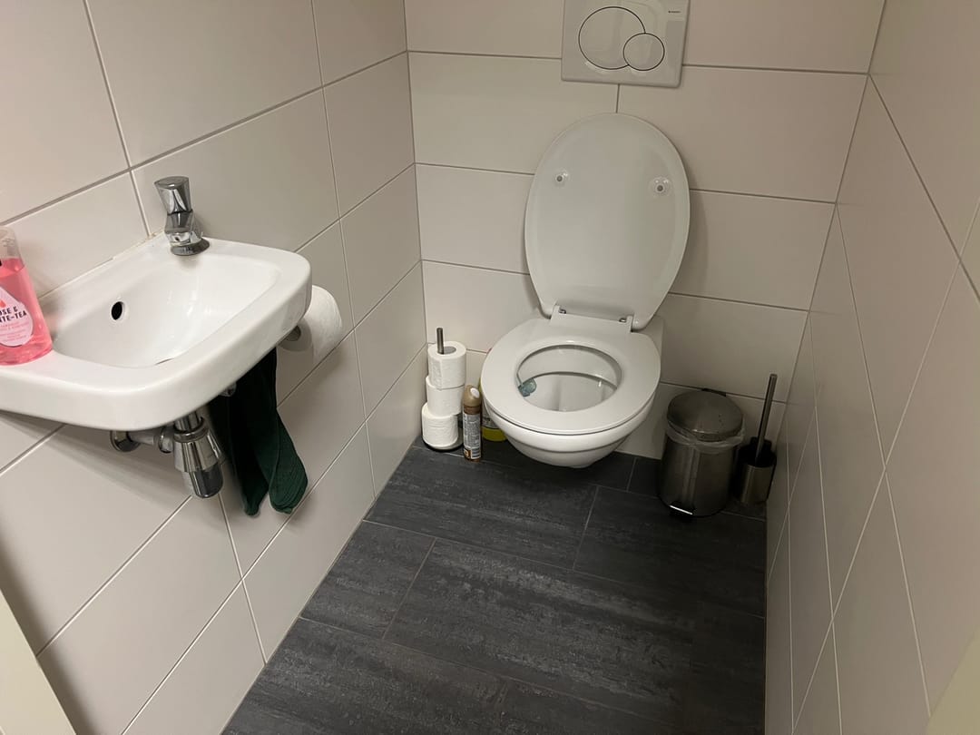 – toilet met fonteintje en keukenblok met de benodigde apparatuur;