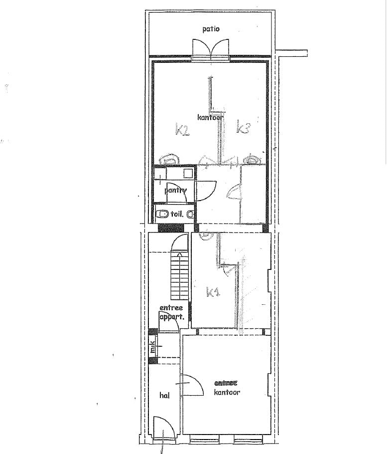 Entree, ruime wacht-/kantoorkamer, drie afzonderlijke spreek-/kantoorkamers (waarvan twee met toegang tot de patio), repro-ruimte, sanitaire voorzieningen en een pantry.