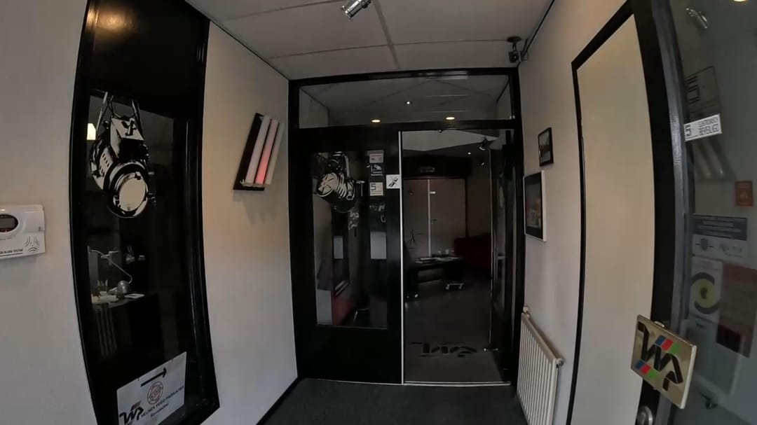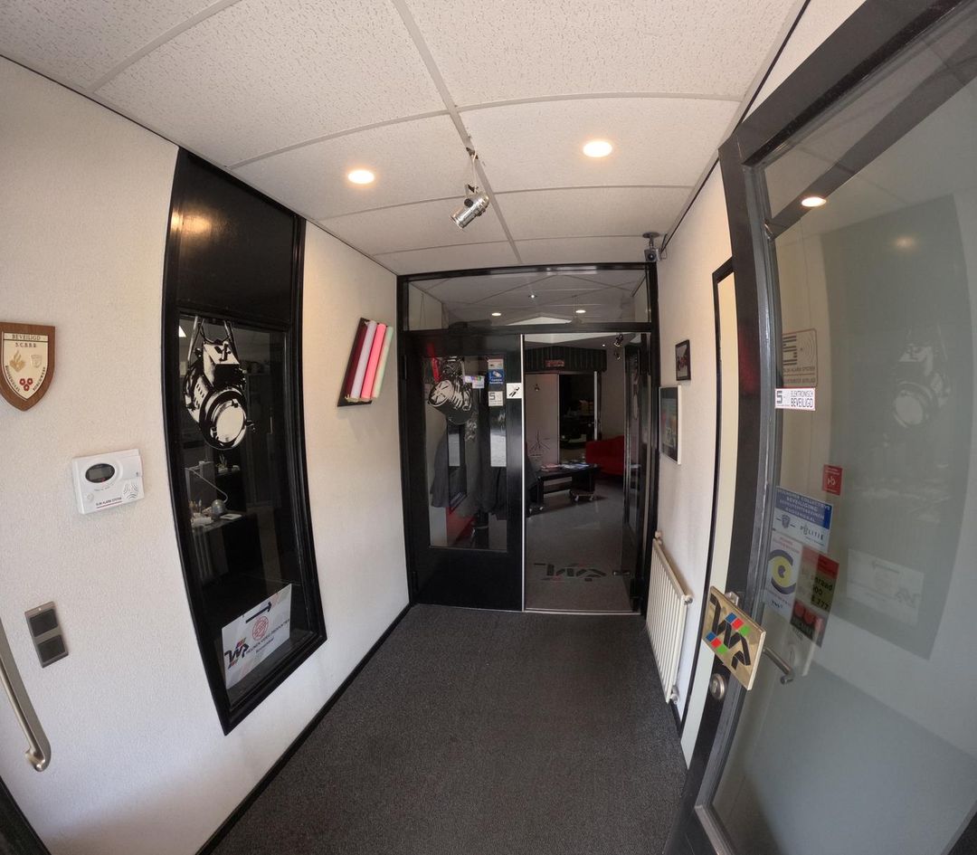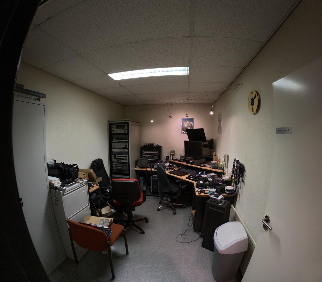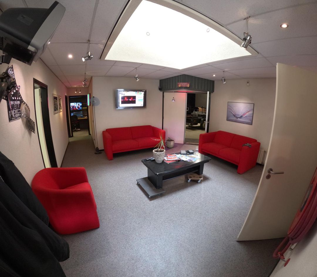 De indrukwekkende studio/hal heeft een hoogte van ca. 6 meter en is volledig geluidsarm dankzij de 40 cm dikke G4-constructie en hoogwaardige isolatie.