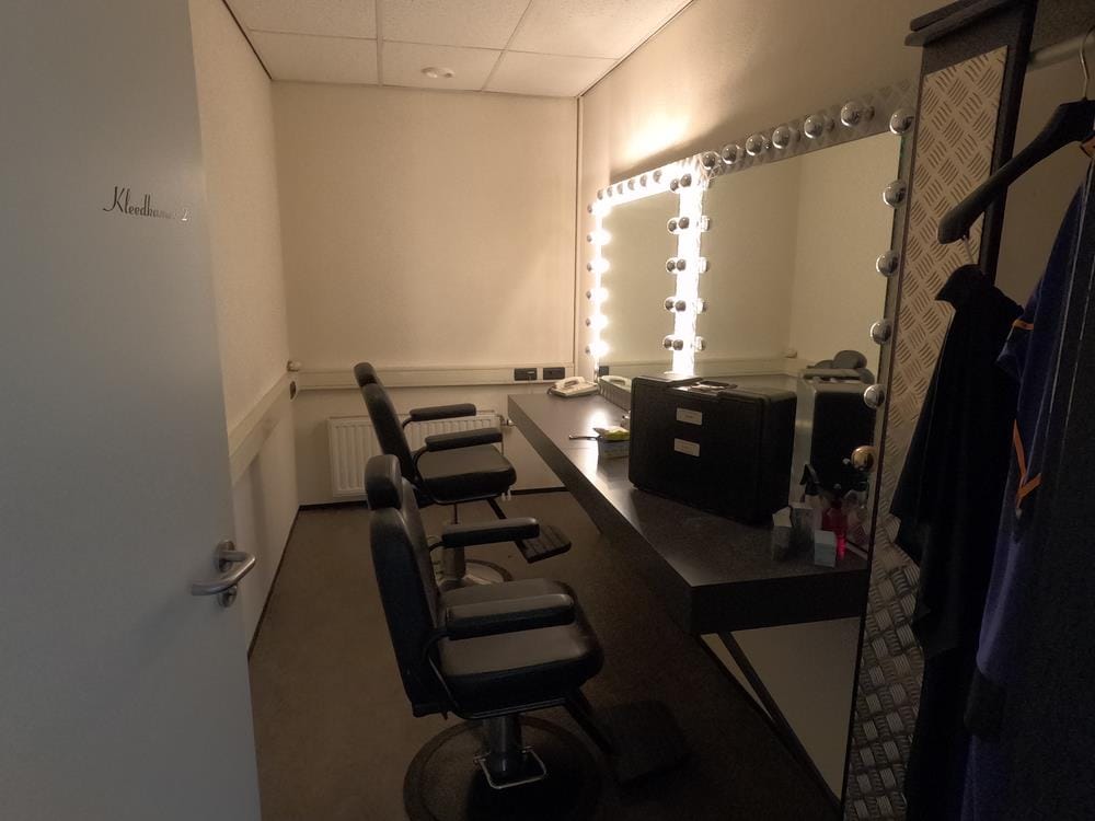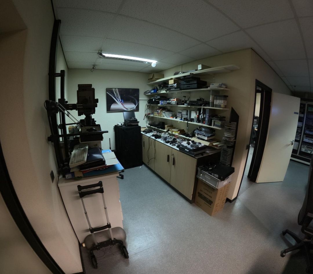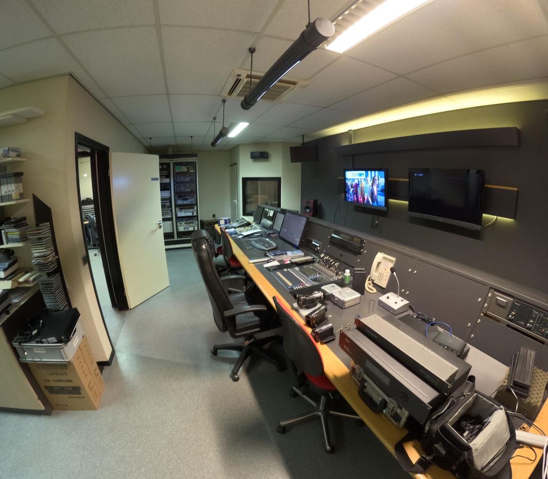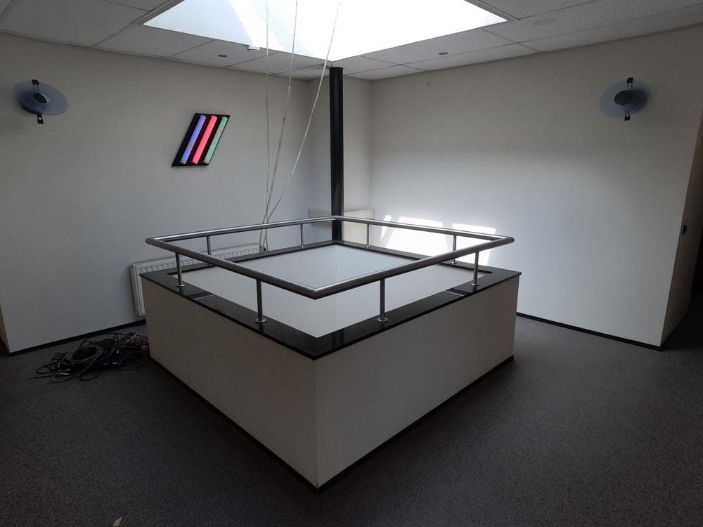 De super gladde epoxy vloer is perfect voor camerabewegingen, terwijl diverse kabelgoten naar alle ruimtes (40 cm breed, 5 cm hoog) optimale technische flexibiliteit bieden.