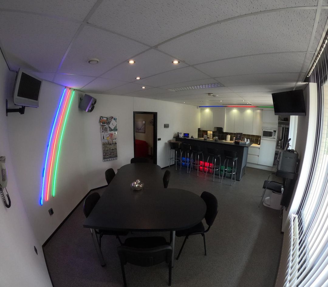 • Klimaatbeheersing met warmteterugwinning en airco in alle ruimtes (m.u.v. werkplaats/archief/grime-/kleedkamer; beneden 2 ruimtes airco).